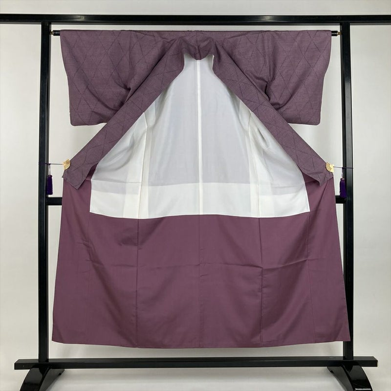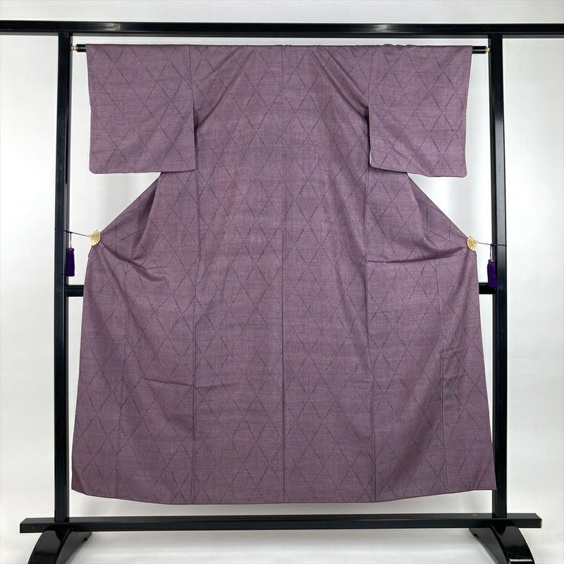 (中古)紬 紫 カジュアル 絣 菱取り 袷 SS【身丈】151cm 【裄丈】63.5cm