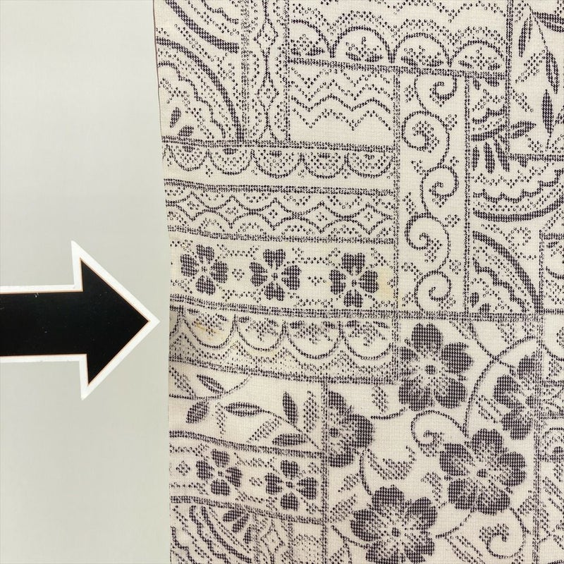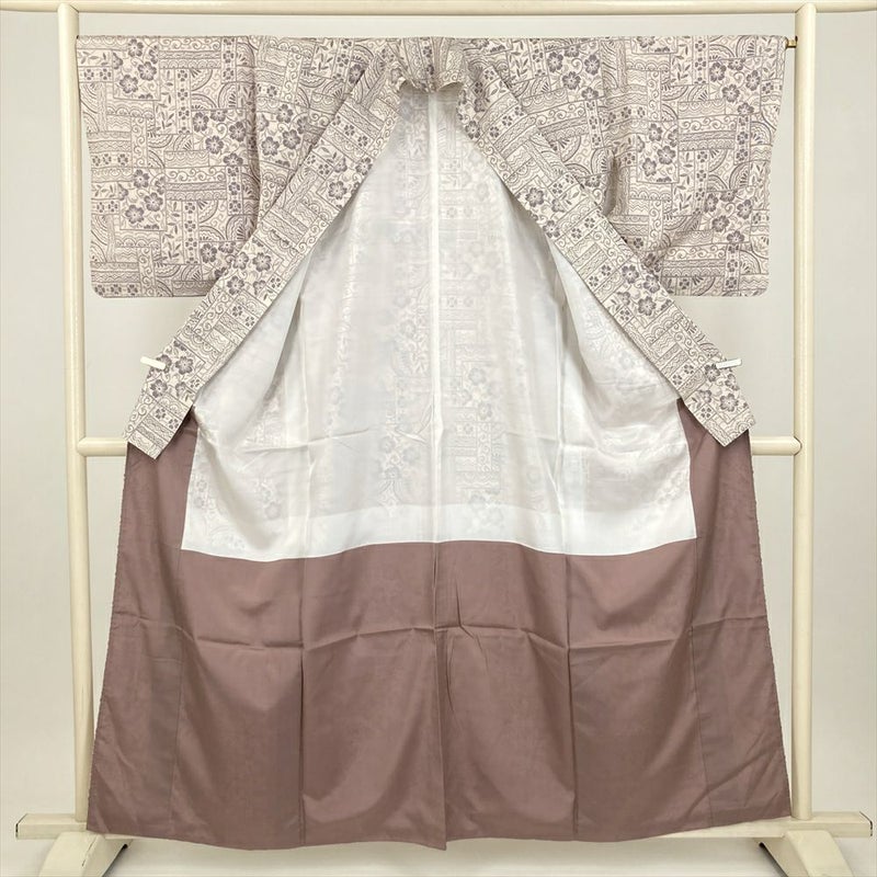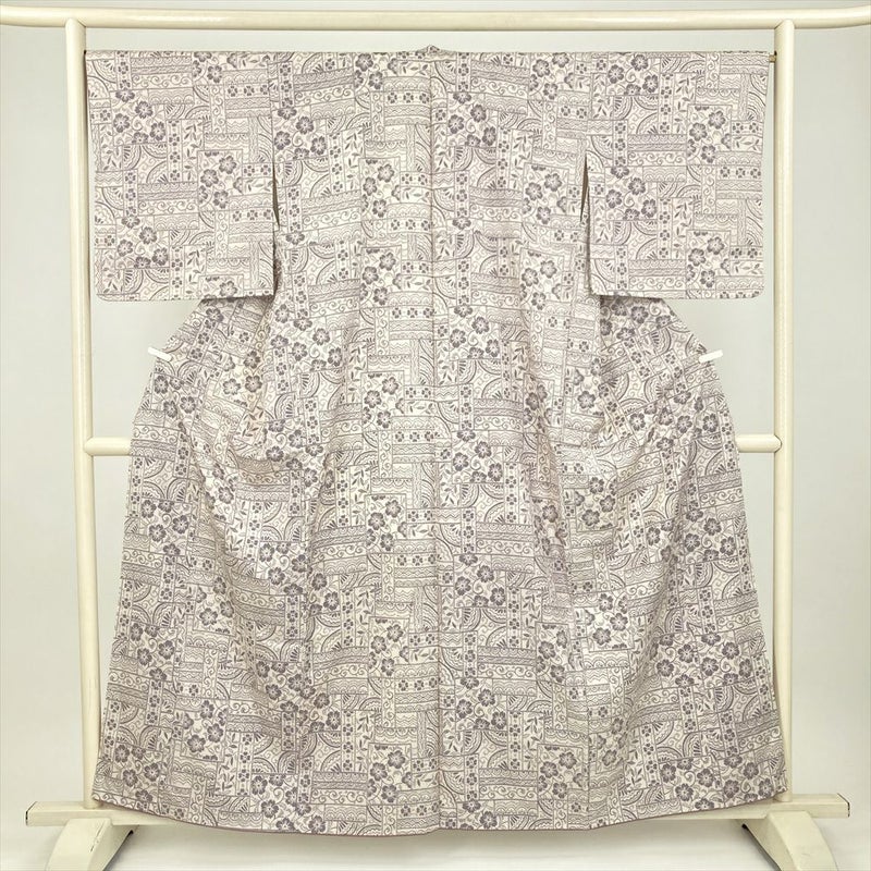 (中古) 紬 白 生成 カジュアル 裂取り オリエンタル 袷 絹【身丈】153cm【裄丈】67.5cm