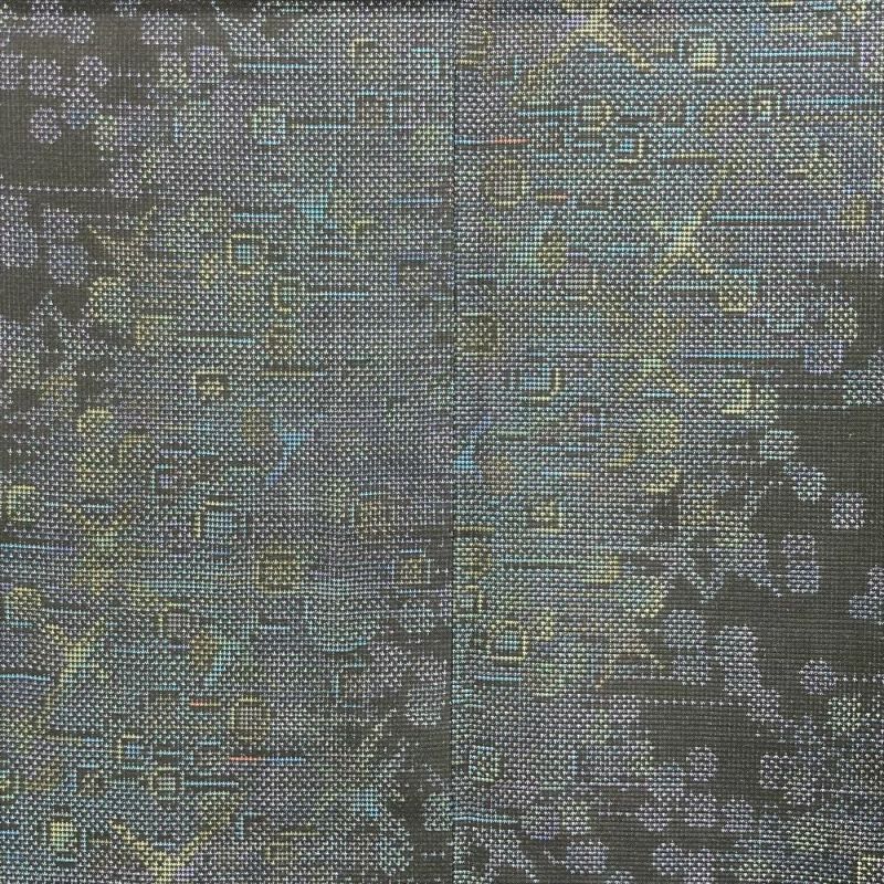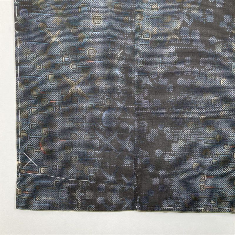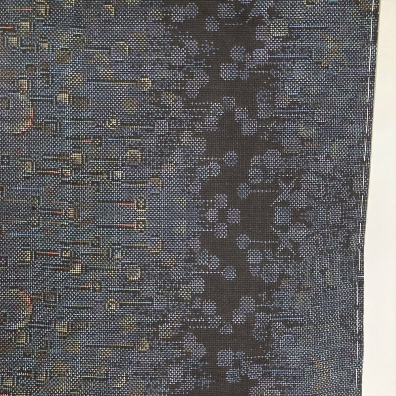 (中古) 大島紬 黒 藍色 紺 カジュアル 7マルキ 抽象柄 袷 S【身丈】156cm【裄丈】62.5cm