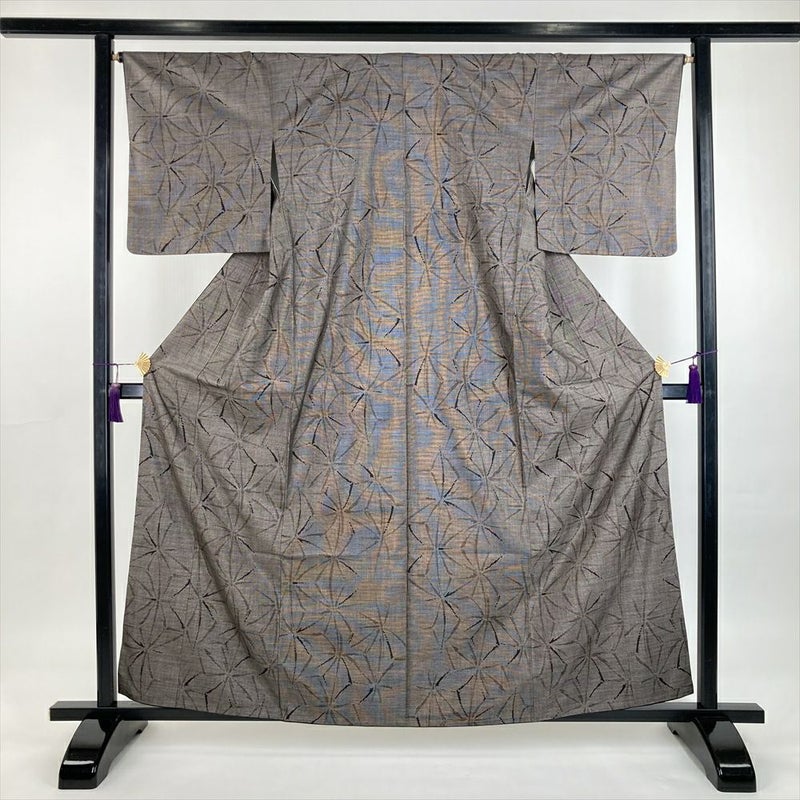 (中古) 大島紬 茶色 カジュアル 7マルキ 麻の葉 袷 S【身丈】156.5cm【裄丈】66.5cm