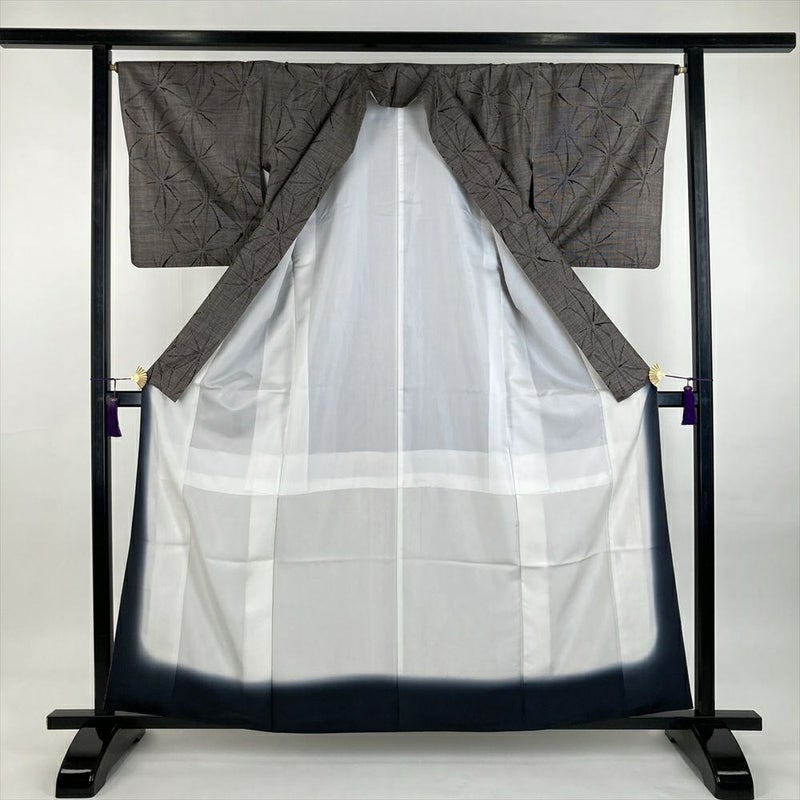 非常に精緻な絣、泥染めによる独特な色合いとツヤ、そして軽くてシワになりにくく、しなやかな着心地が特徴で、現在も数多くの着物ファンを虜にしています。カジュアルシーンにてお使いいただけるお着物です。保存臭がややございます。きものやまとのタグがございます
