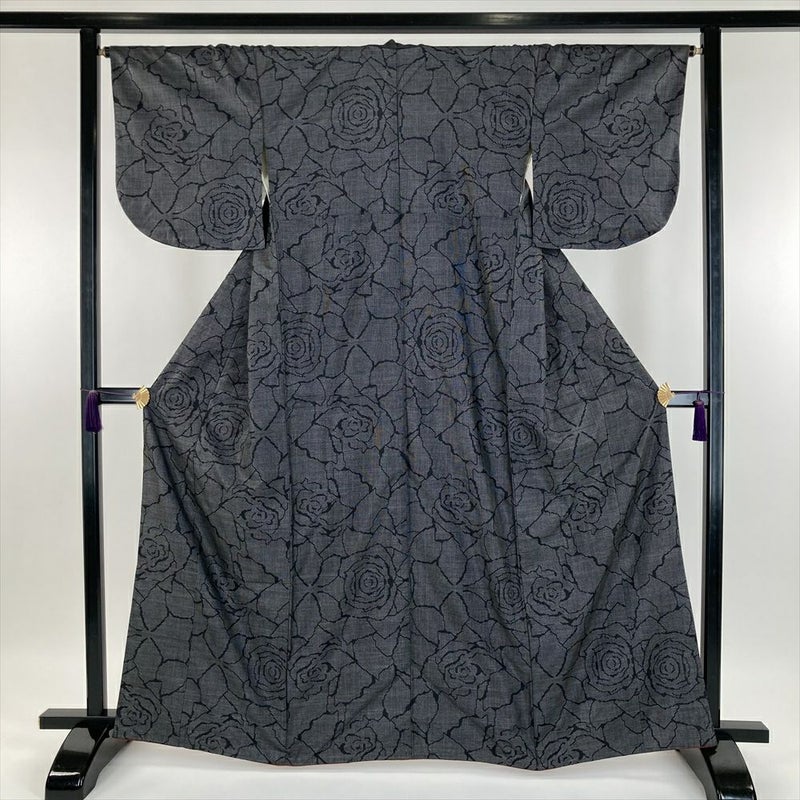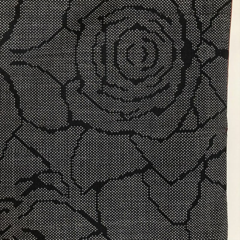 (中古) 大島紬 黒色 ブラック系 カジュアル バラ 袷 S 【身丈】159.5cm【裄丈】66cm