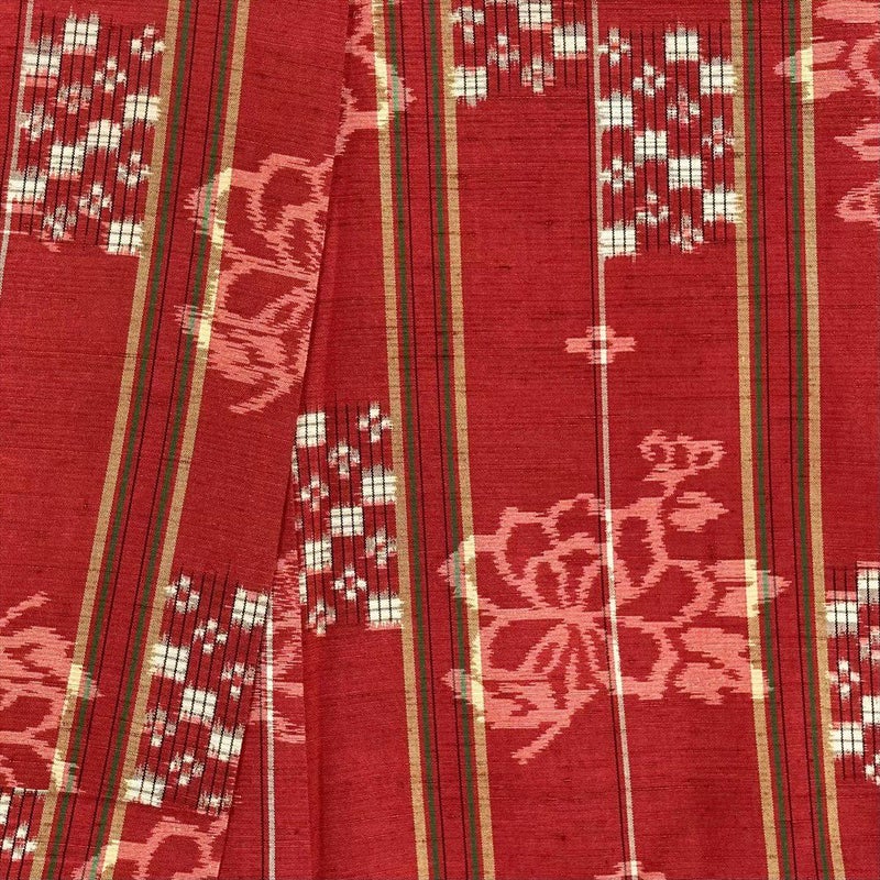 【色柄】赤色 レッド系 カジュアル 縞 変わり市松 牡丹
