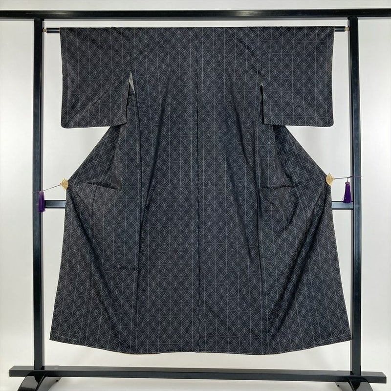 緻密で美しい図柄に、水にぬれた烏の羽のように深くつやつやした色味、しなやかな肌触りと軽やかな着心地が魅力です。同窓会や結婚式の二次会、観劇や美術館巡り、ショッピングなど、紬の着物は普段着ですから、幅広い用途で使用できます。リユース品ですが状態は良好ですので、すぐにお使いいただけます。衿裏にスナップ汚れがございます。保存臭がややございます。しつけがございます。