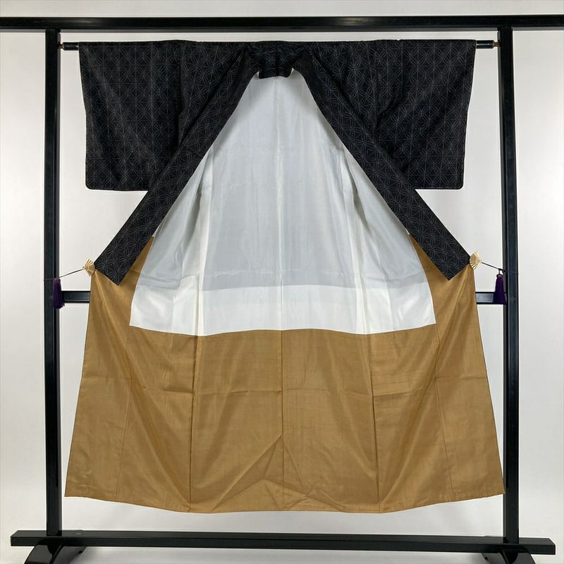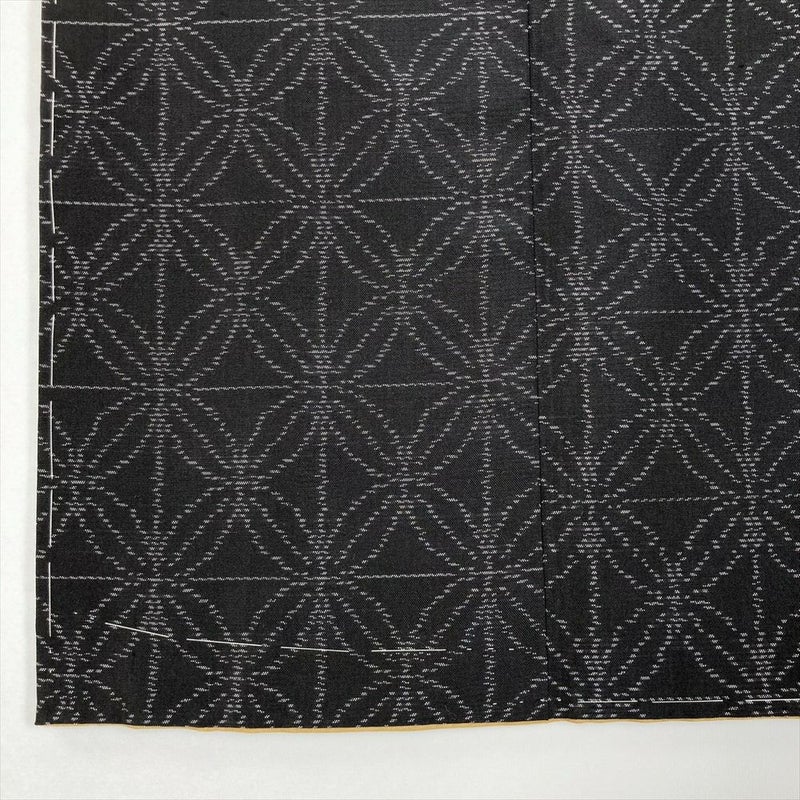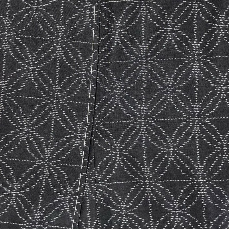 (中古) 大島紬 黒色 カジュアル 格子に亀甲 袷 SS 【身丈】144.5cm【裄丈】61cm