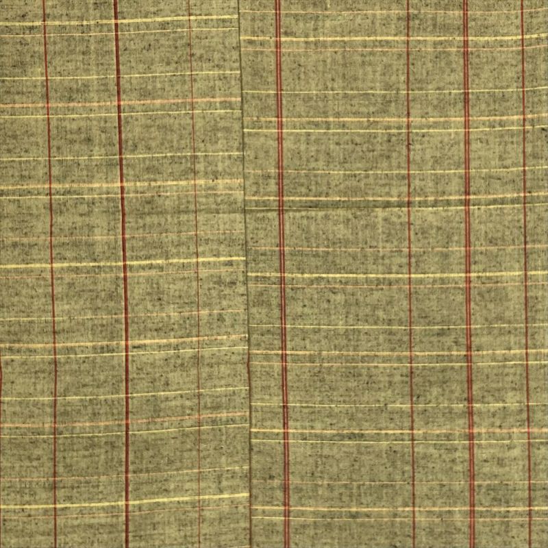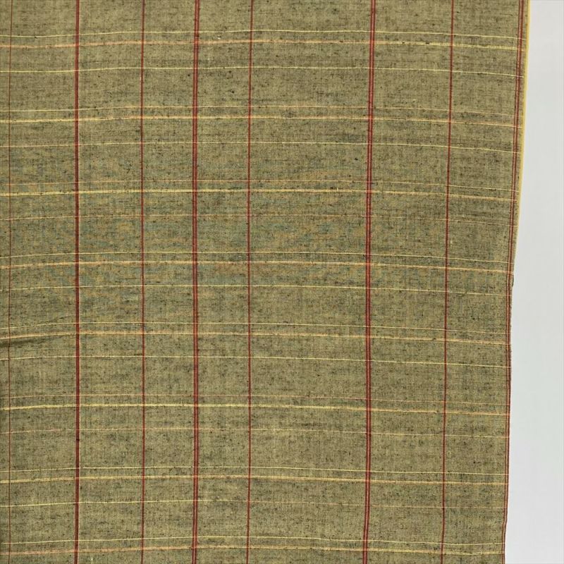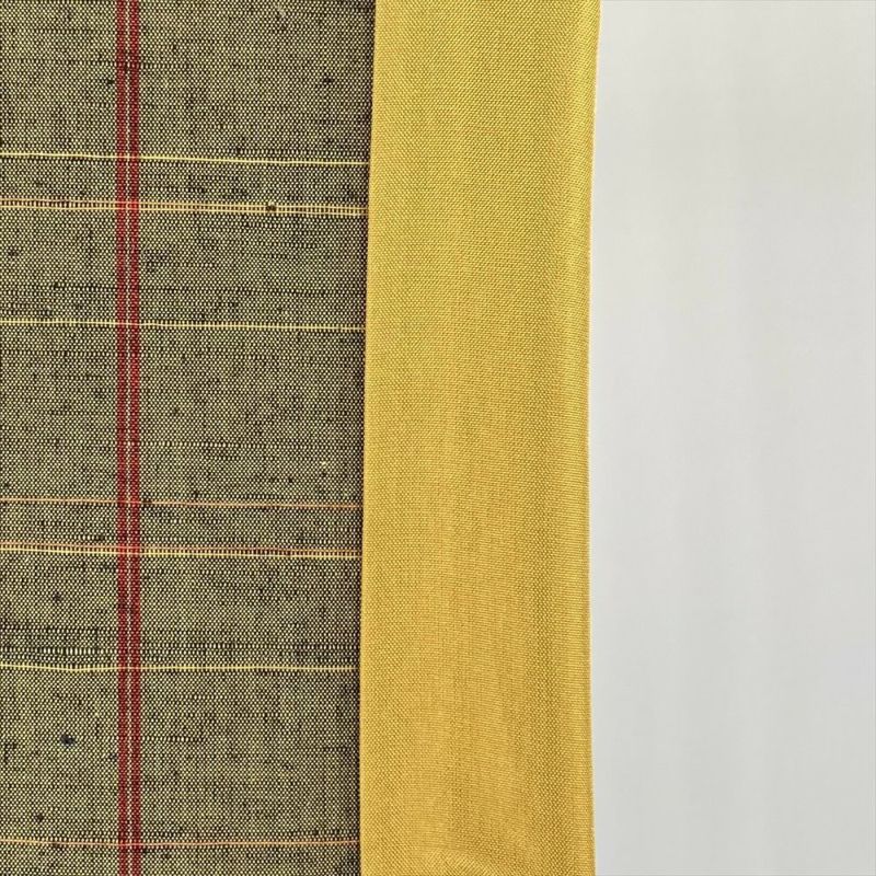 (中古) 紬 鈍黄色 カジュアル 変わり格子 袷 SS【身丈】147.5cm【裄丈】63.5cm