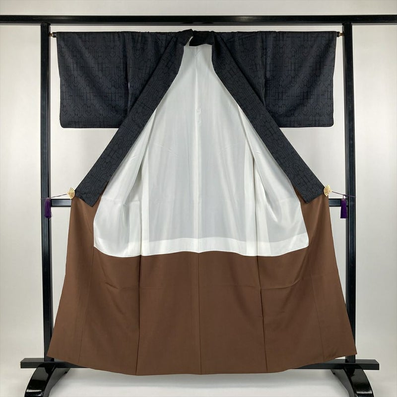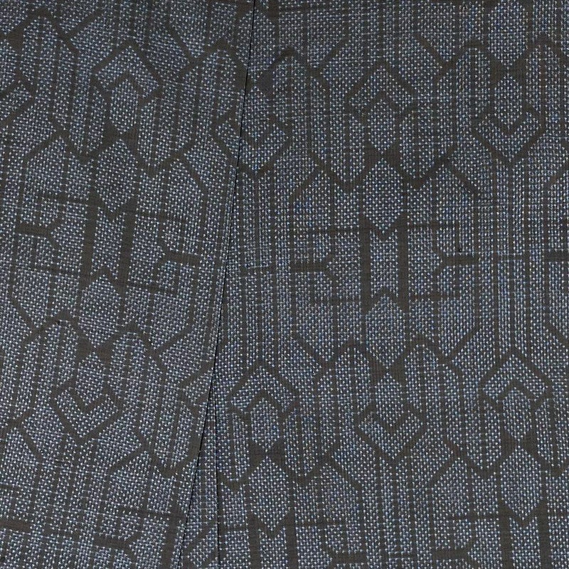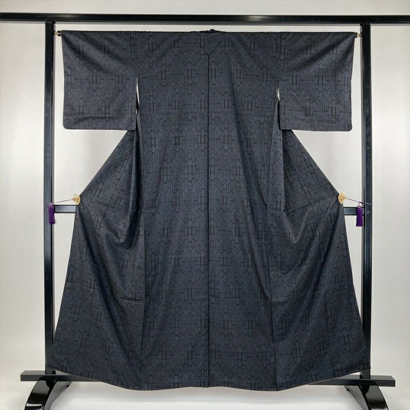 (中古) 大島紬 黒色 カジュアル 5マルキ 幾何学柄 袷 S【身丈】156cm【裄丈】65.5cm