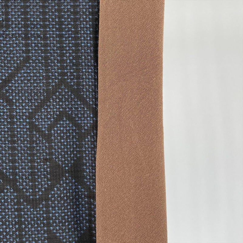 大島紬は、鹿児島県奄美大島や鹿児島市などで織られている絹織物で、世界三大織物に数えられ、結城紬と並ぶ高級紬の代表として知られていますが「織」の「カジュアル」のきものに分類される普段着です。緻密な図柄、つやつやした色味、しなやかな肌触り、軽やかな着心地が魅力です。衿裏、胴裏に汚れがございます。保存臭がややございます。