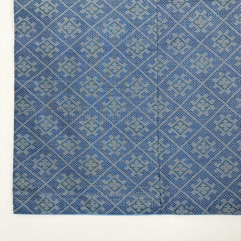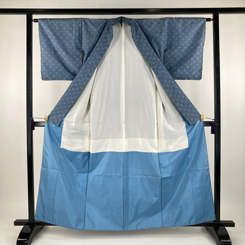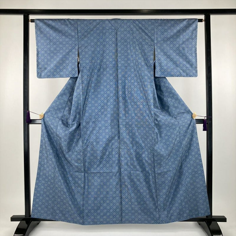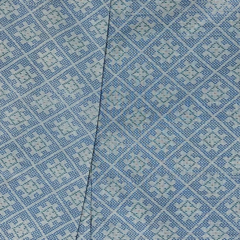 (中古) 紬 水色 カジュアル 斜め格子 井桁調 袷 S【身丈】157cm【裄丈】63cm