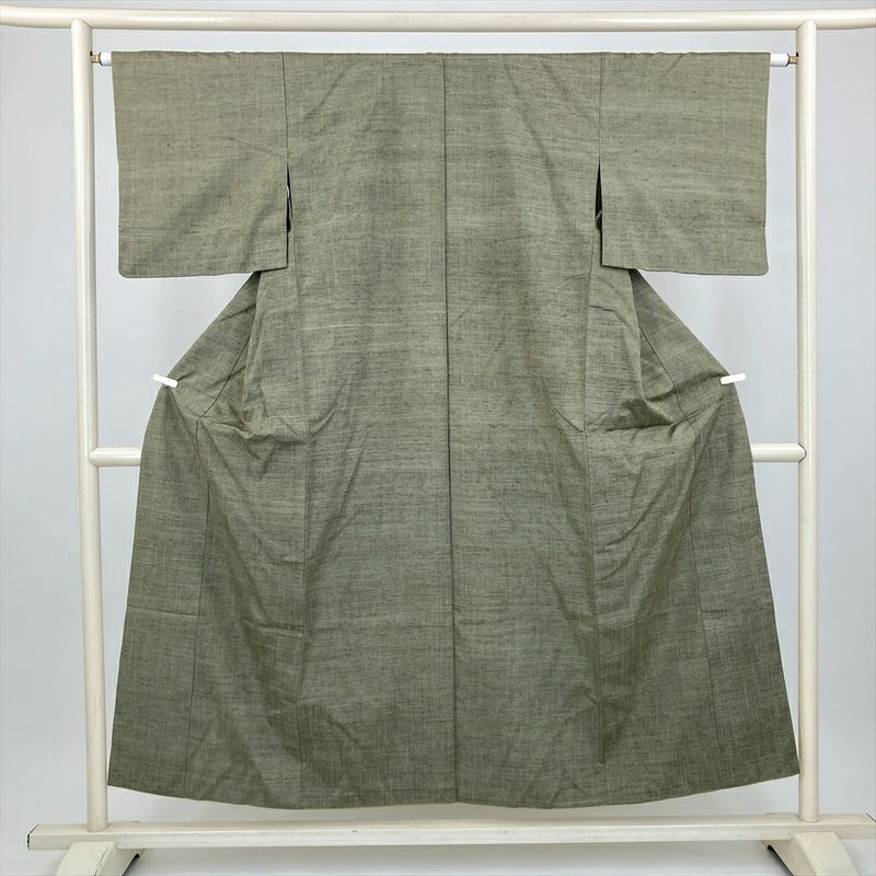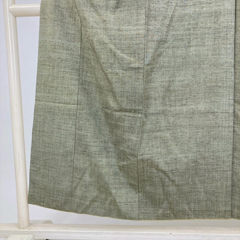 (中古) 紬 緑 カジュアル 無地 袷 絹【身丈】146cm【裄丈】63.5cm
