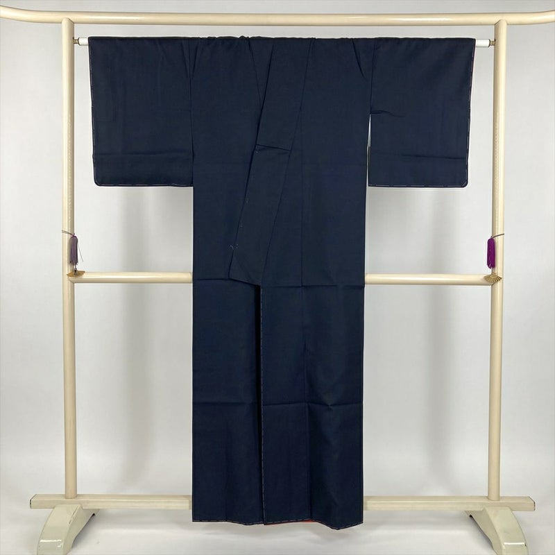 黒と藍色のシンプルな絣柄が美しい紬です。主張しすぎないデザインなので、どんな帯とも合わせやすく、様々なシーンで活躍してくれます。
