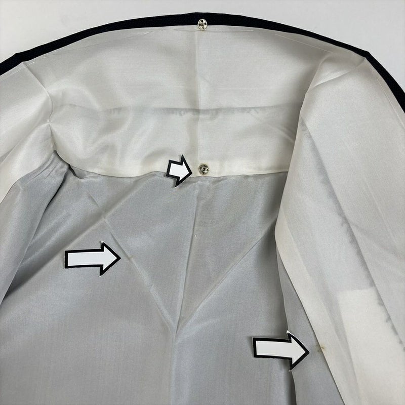 衿裏にスナップ汚れがございます。表地に糸の飛び出しが点在しています。