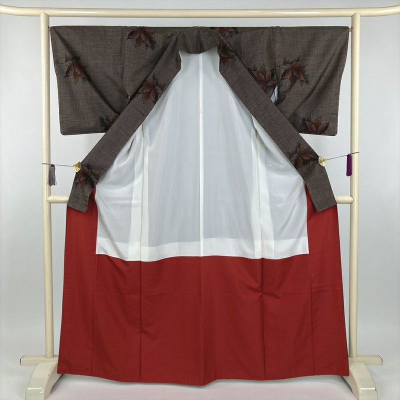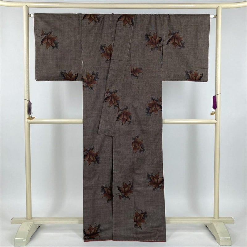 (中古) 大島紬 茶色 カジュアル 織り 四季花 袷 絹【身丈】162cm【裄丈】67cm