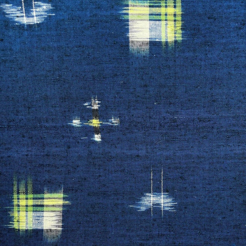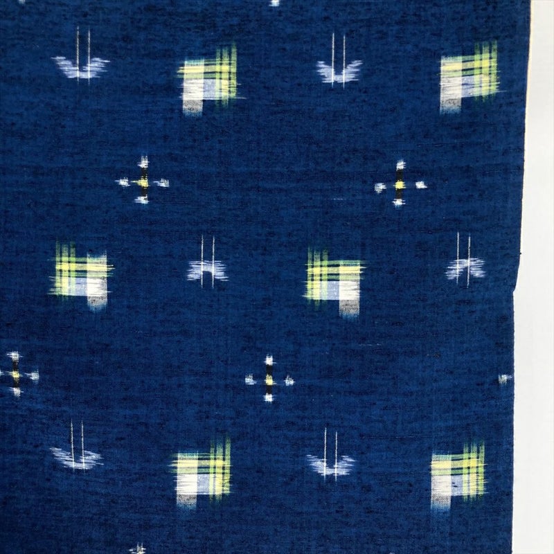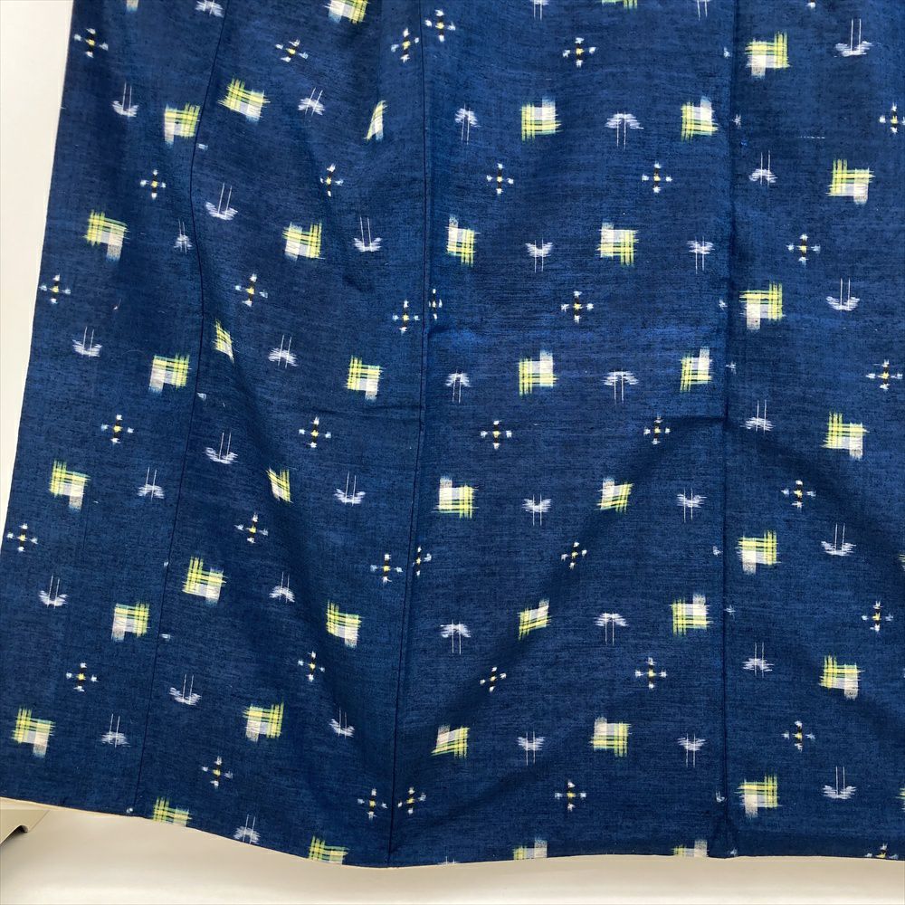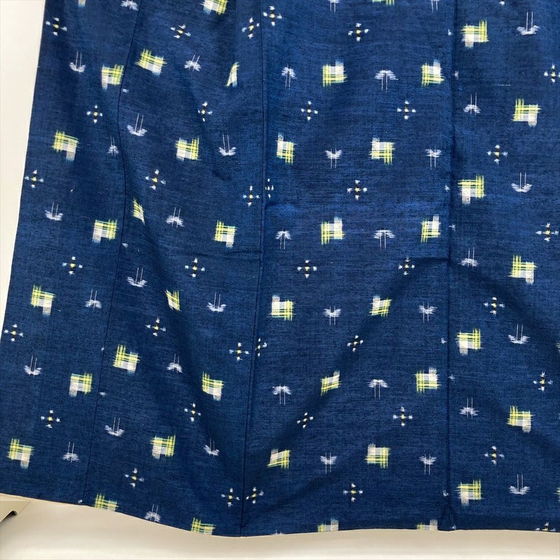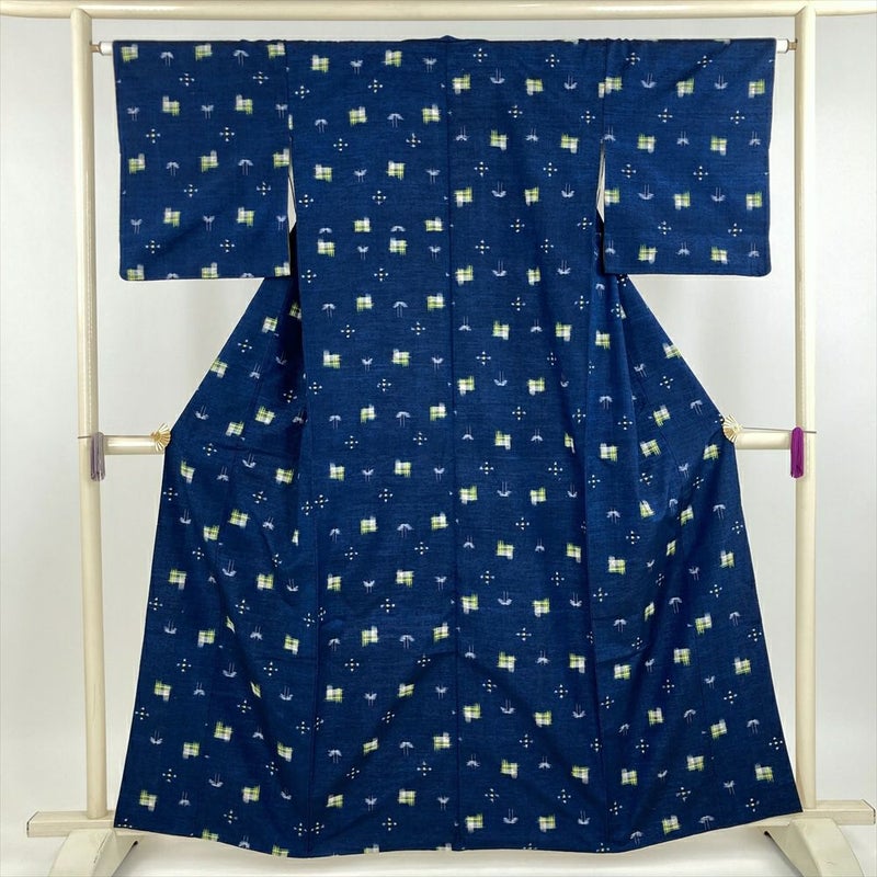 (中古) 紬 紺色 カジュアル 絣 蝶 袷 絹 【身丈】157cm【裄丈】64cm