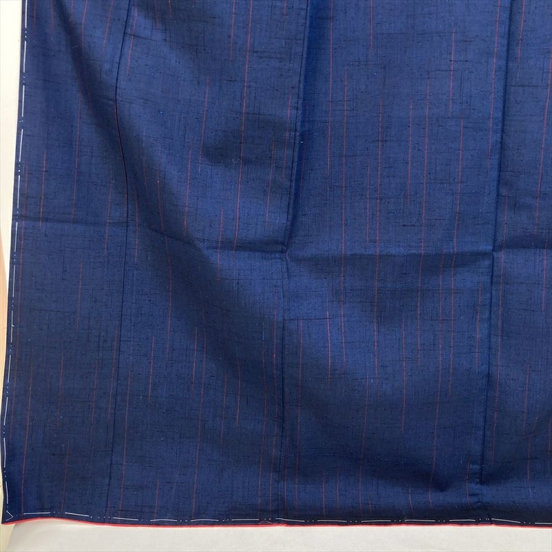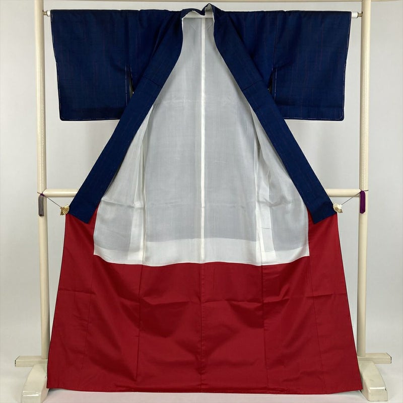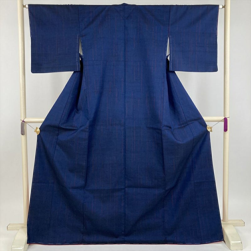 (中古) 紬 紺色 濃青色 カジュアル 途切れ縞 袷 絹 【身丈】165cm【裄丈】64cm