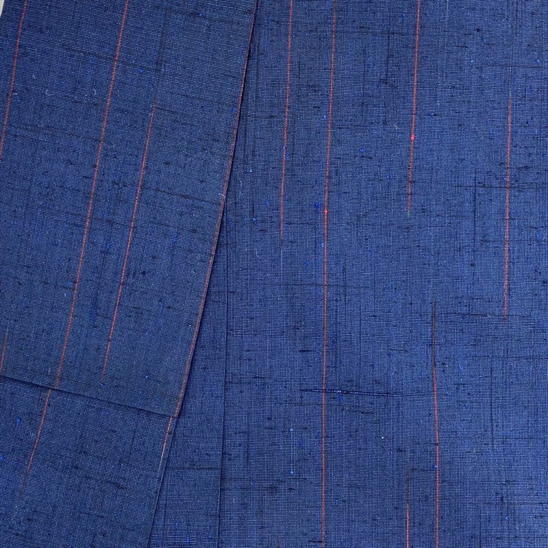 【紺と赤のコントラストが奏でる】モダンな紬の物語。