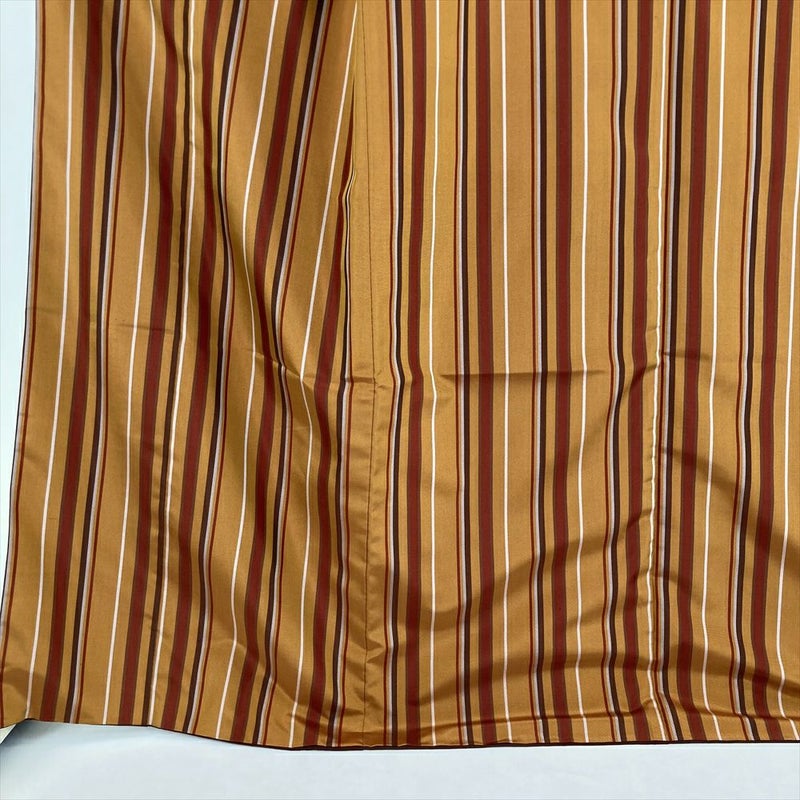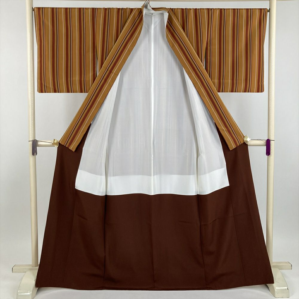 (中古) 紬 金茶色 カジュアル 変わり縞 袷 絹 【身丈】163cm【裄丈】66.5cm