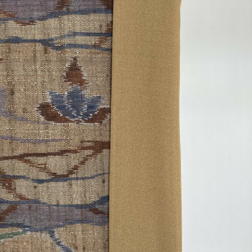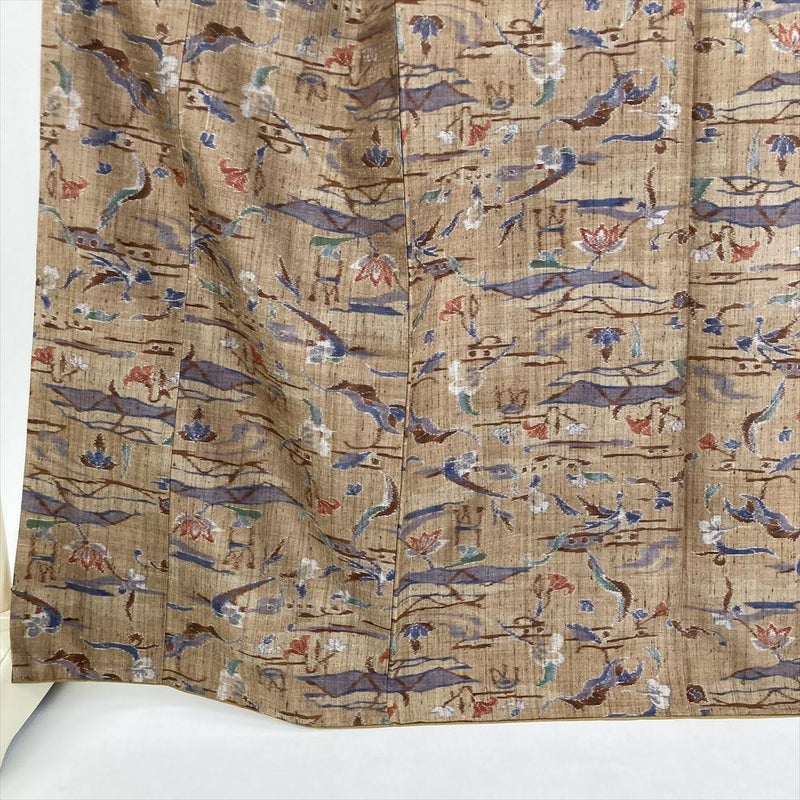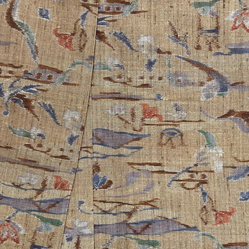 茶色地に、抽象的に表現された草花柄は、シンプルながらも洗練されたデザインです。柄の色合いも、派手すぎず、落ち着いたトーンで、大人の女性にぴったりです。