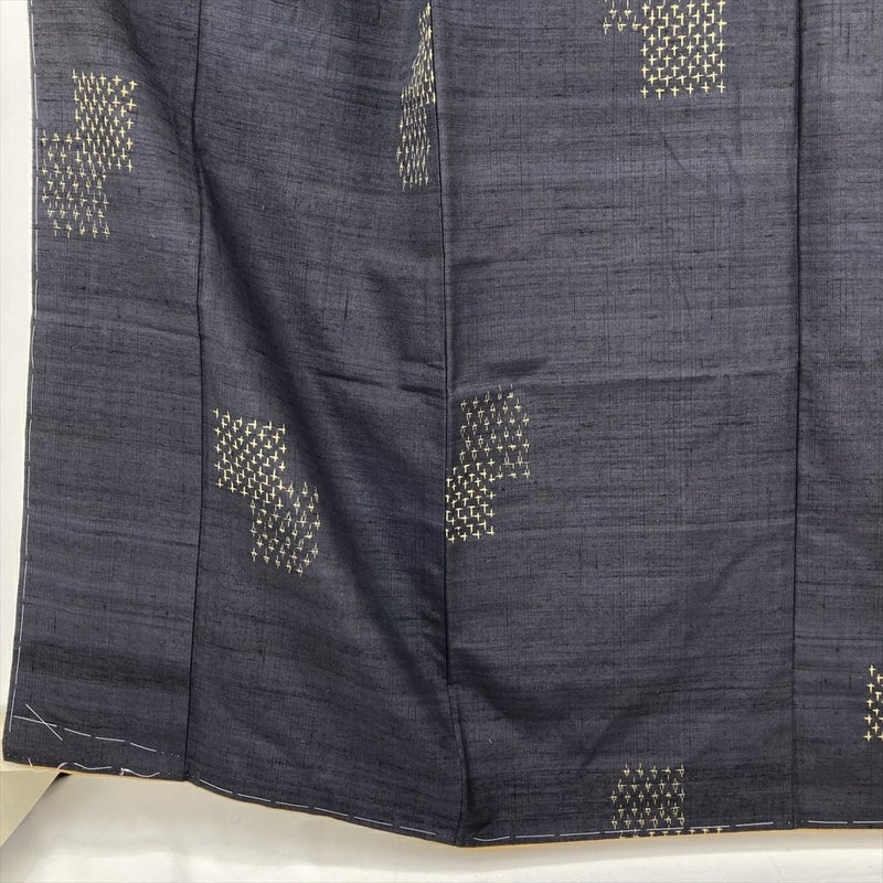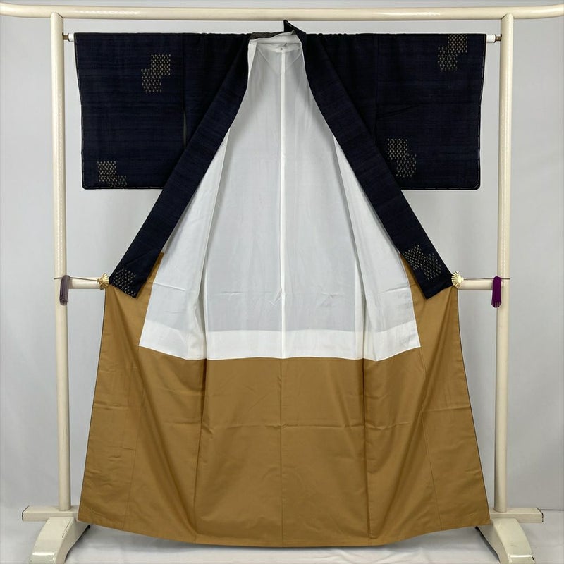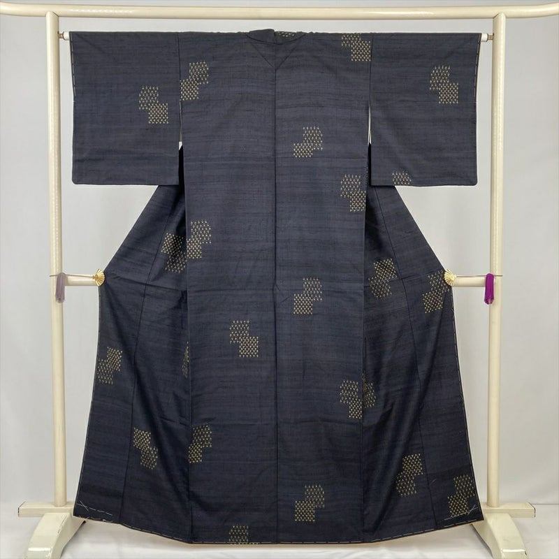 (中古) 紬 紺 カジュアル 十字絣 袷 絹【身丈】155.5cm【裄丈】64.5cm