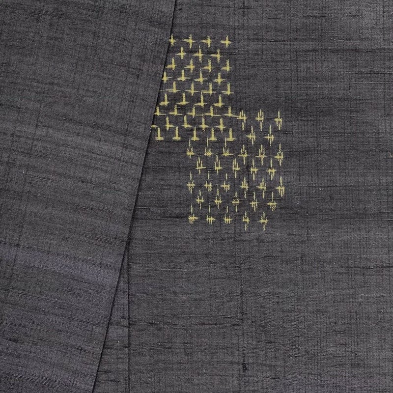 しなやかな紬地に、伝統的な十字絣(じゅうじがすり)を飛び柄で配した、粋な着物です。