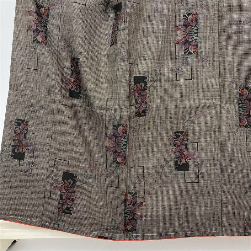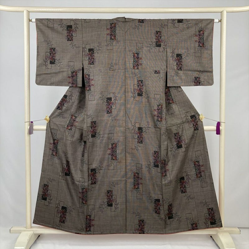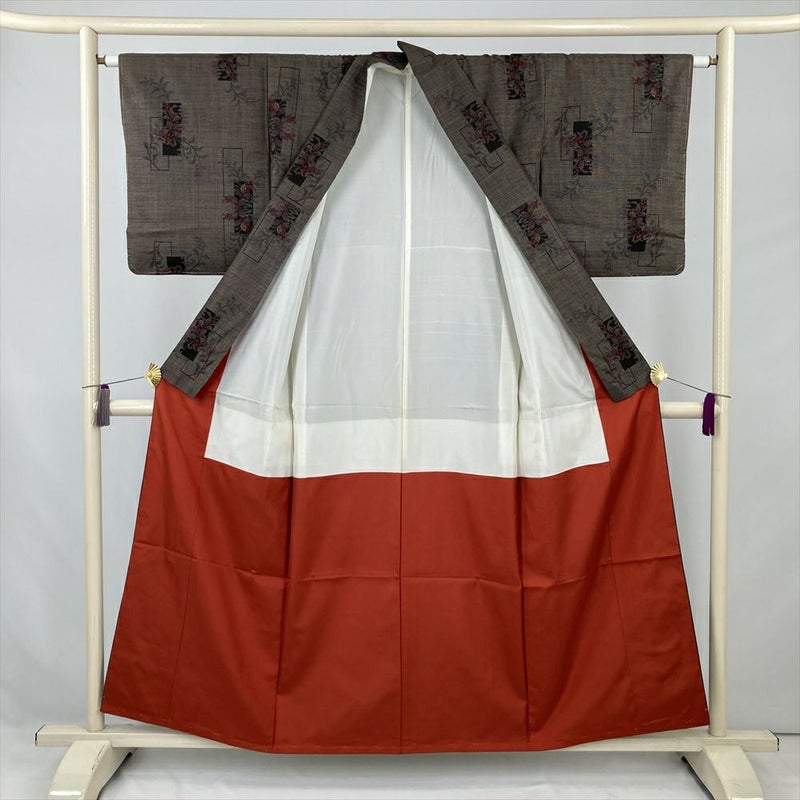 (中古) 大島紬 焦げ茶 カジュアル 花短冊 袷 絹【身丈】149.5cm【裄丈】62.5cm