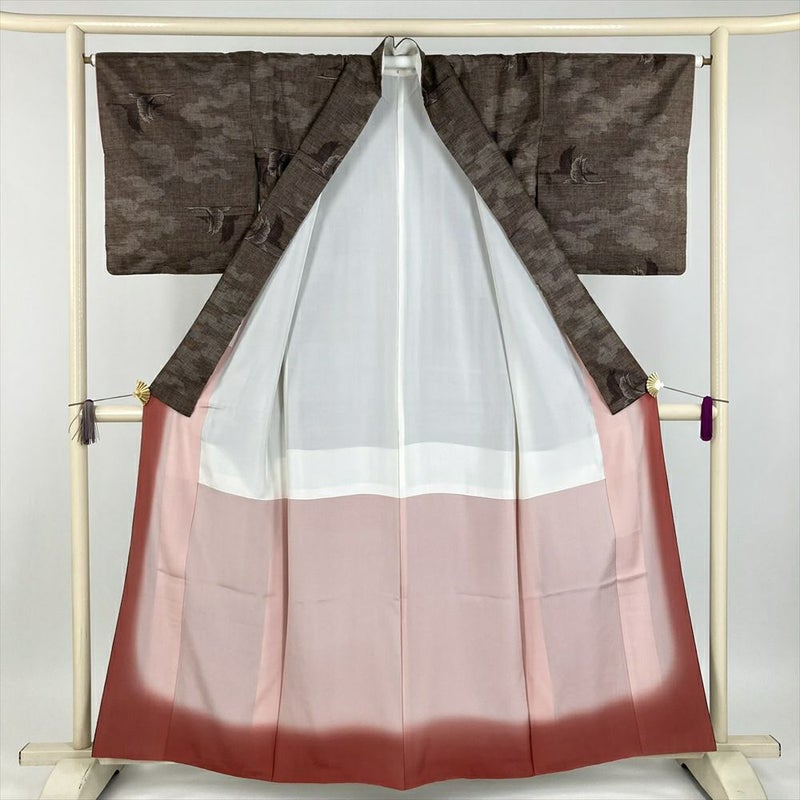 【色柄】焦げ茶色 カジュアル 鶴 雲