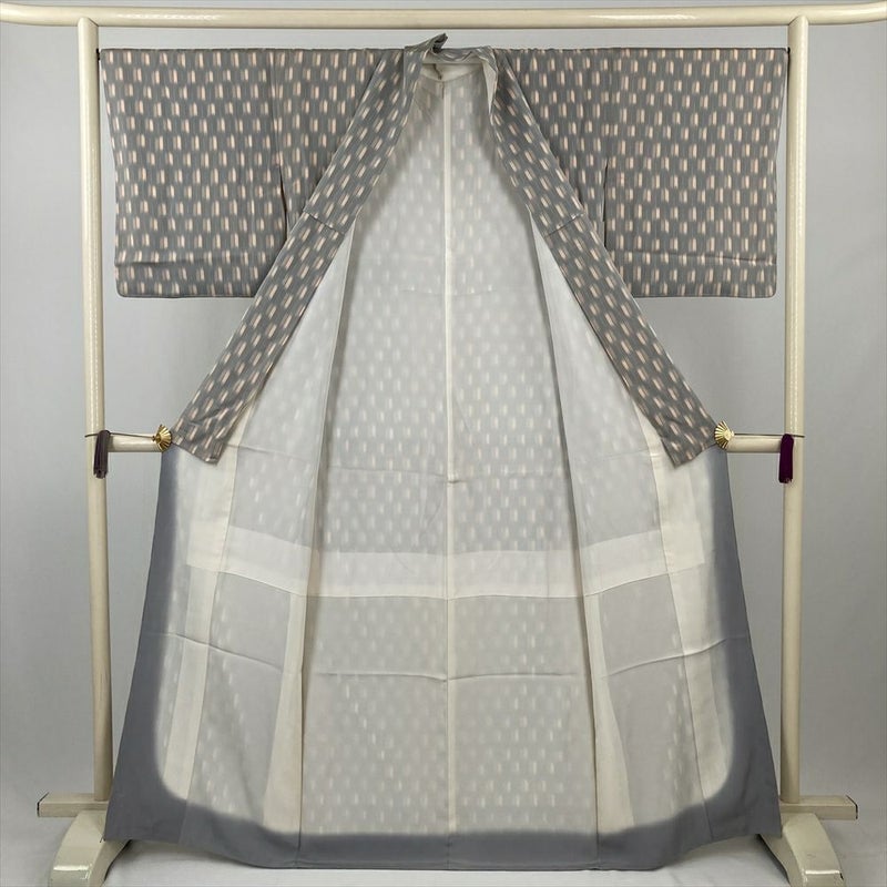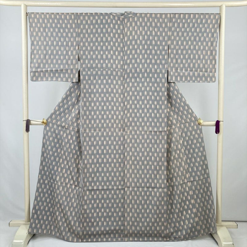 (中古) 紬 ピンク グレー カジュアル 矢羽根柄 袷 絹【身丈】159cm【裄丈】67.5cm