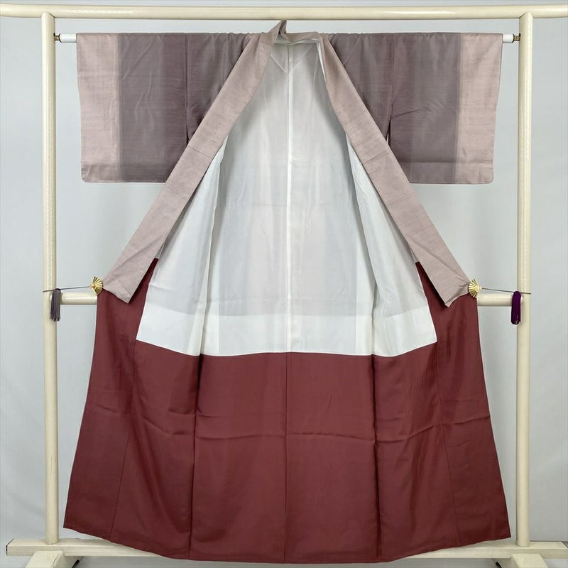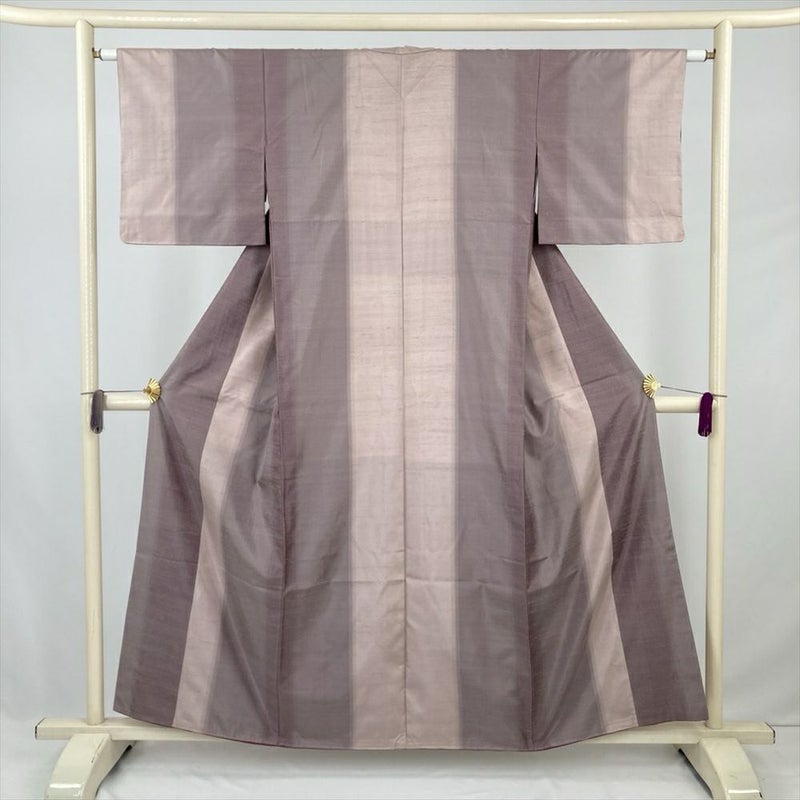 (中古) 紬 灰紫 くすみピンク カジュアル 縦のグラデーション 袷 絹【身丈】152cm【裄丈】62cm