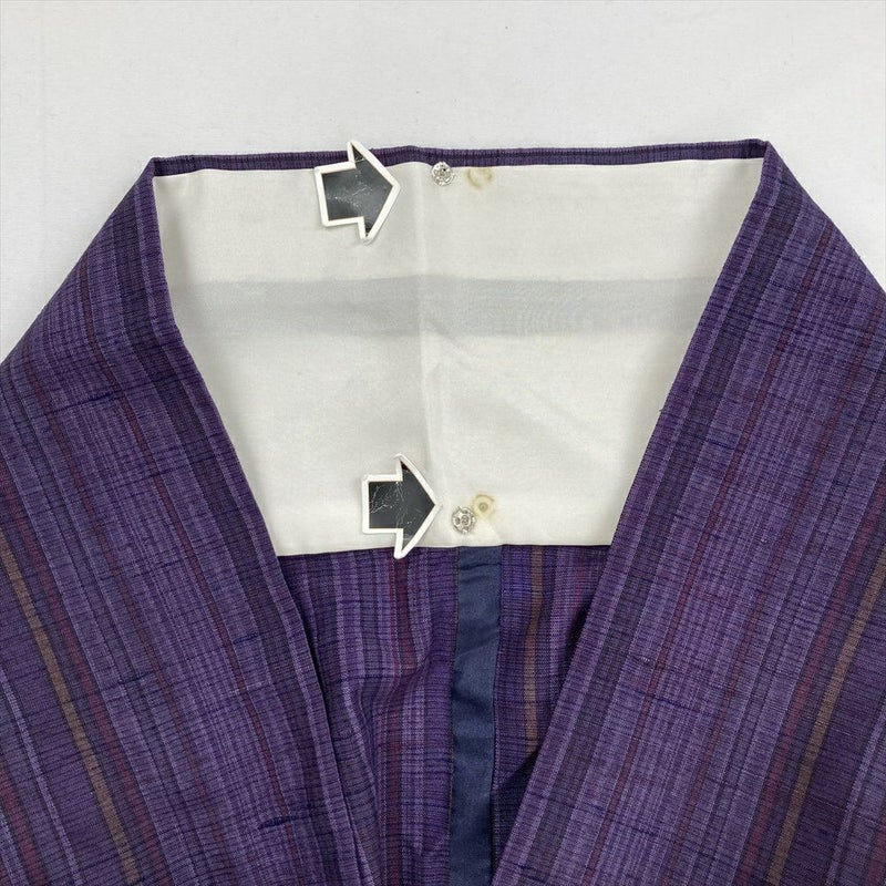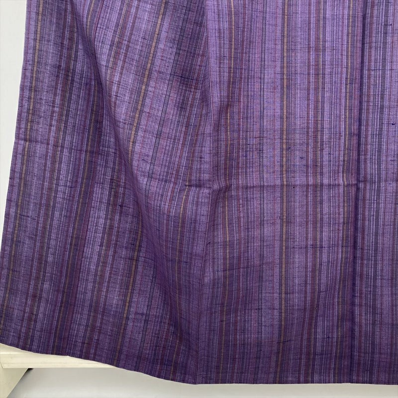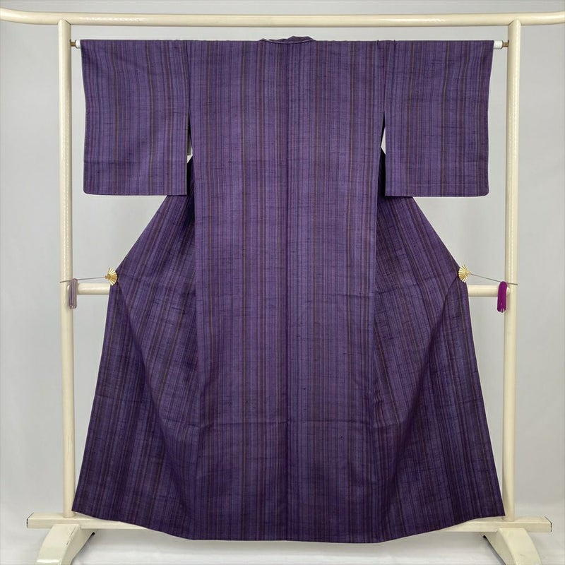 (中古) 単衣紬 紫 カジュアル 縞 単衣 絹【身丈】154cm【裄丈】64.5cm