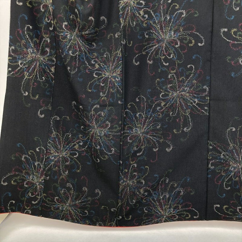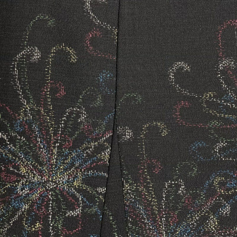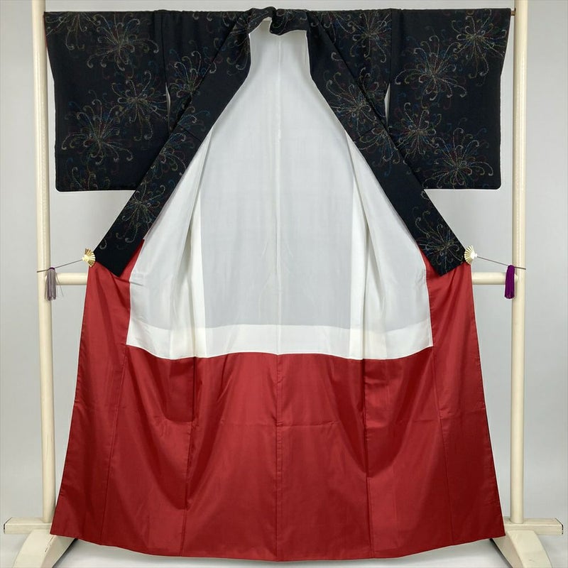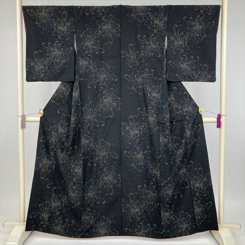 (中古) 紬 黒 カジュアル 乱菊 袷 絹【身丈】158cm【裄丈】68cm