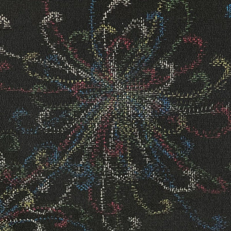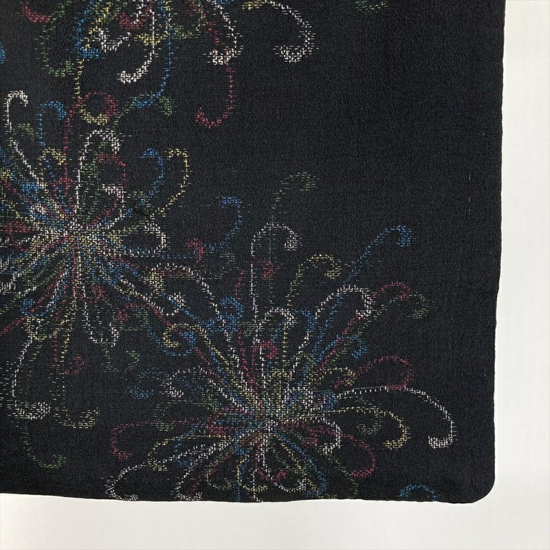 織りの凹凸が乱菊の立体感を引き立て、黒地に鮮やかに浮かび上がる様は、まるで絵画のよう。