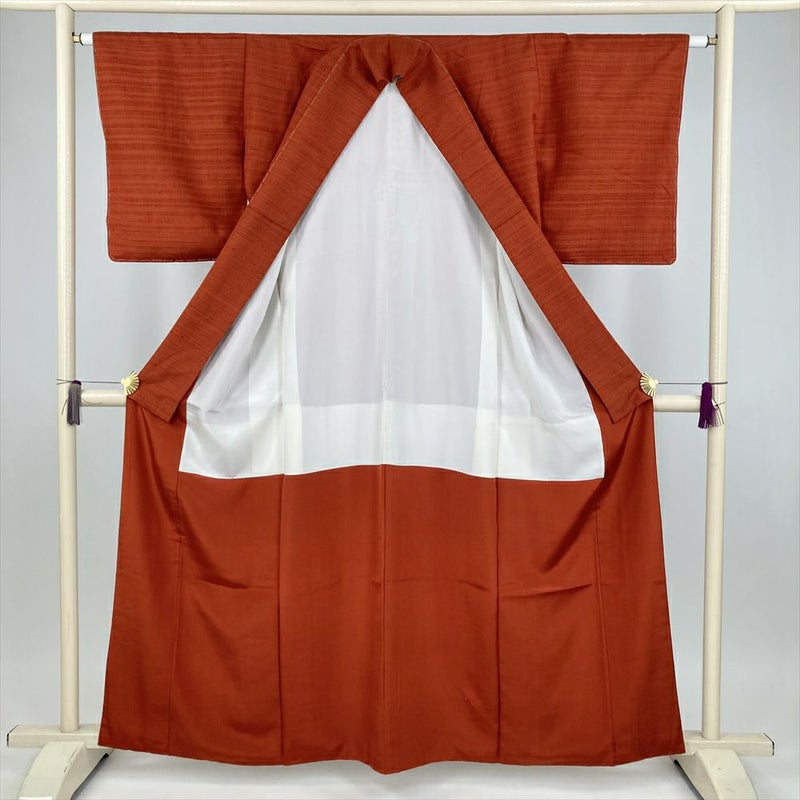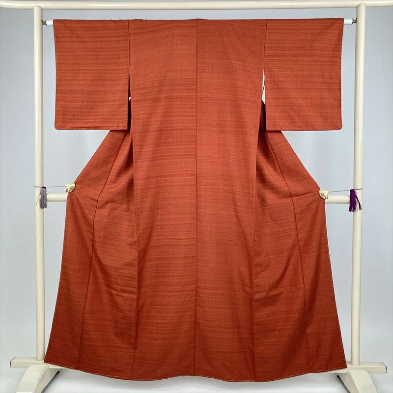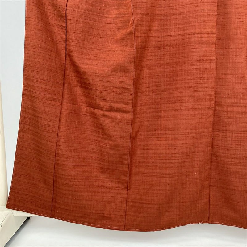 (中古) 紬 赤茶 カジュアル 無地感 袷 絹 【身丈】155cm【裄丈】62.5cm