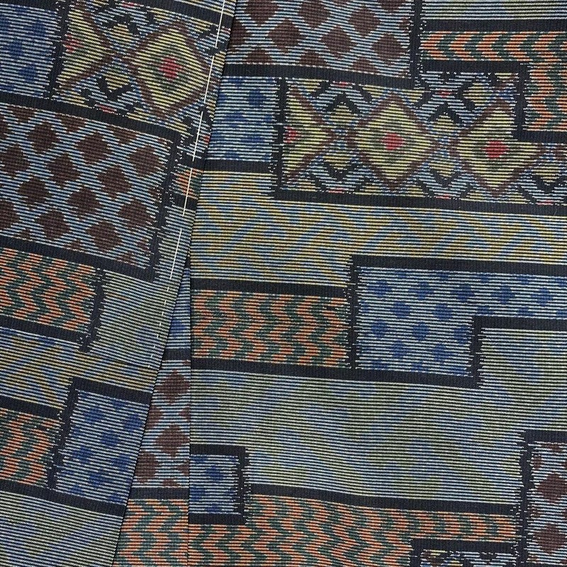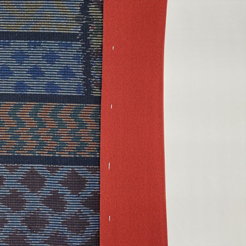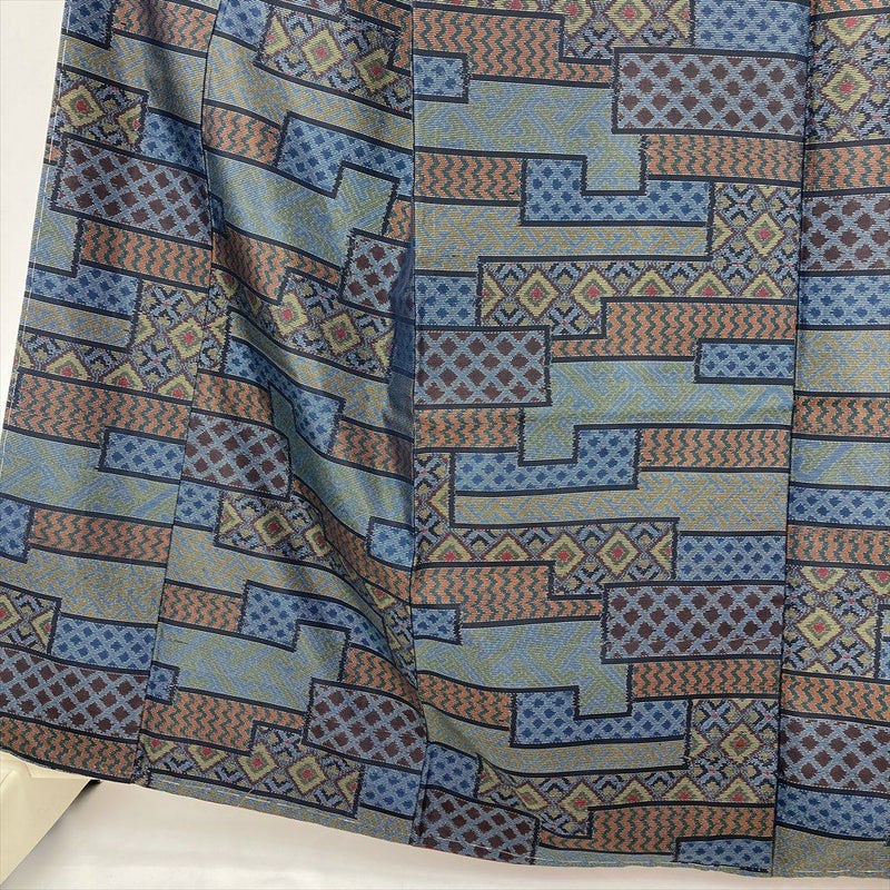 【色柄】紺 青 カジュアル 変わり横段 幾何学柄