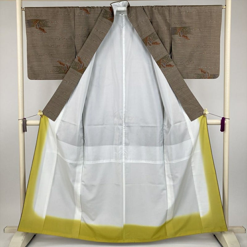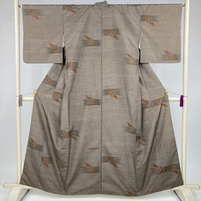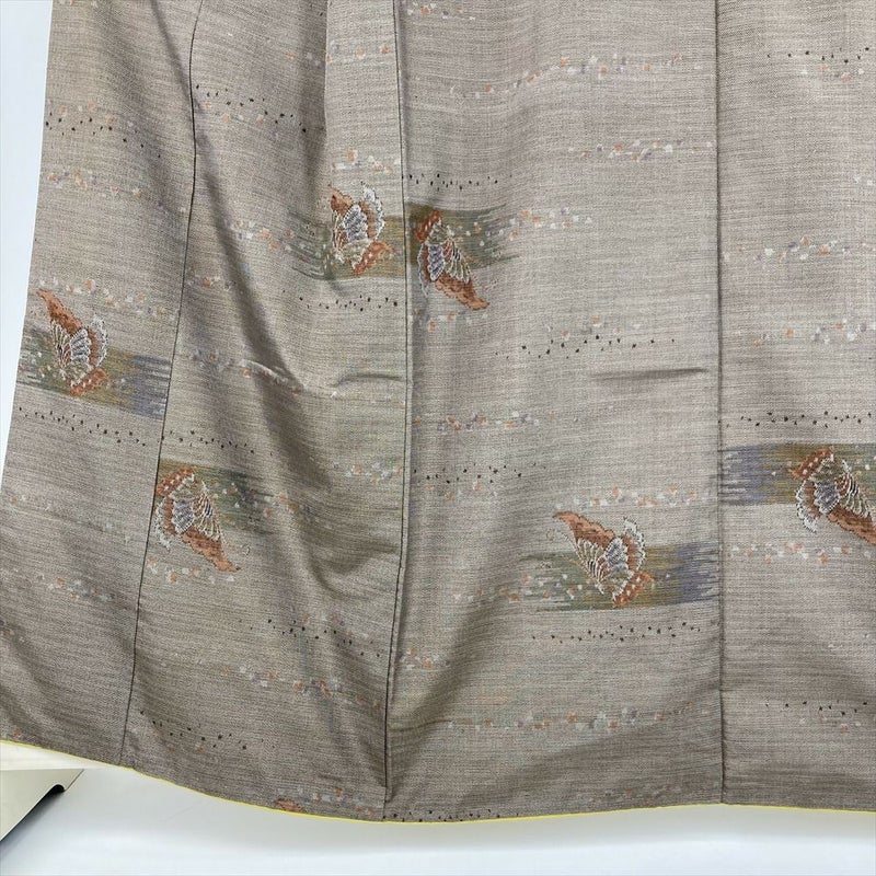 (中古) 大島紬 焦げ茶 カジュアル 蝶文様 袷 絹 【身丈】153cm【裄丈】65.5cm
