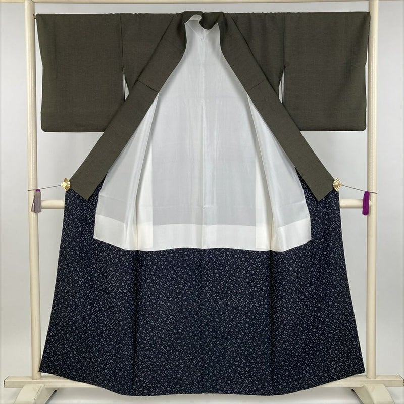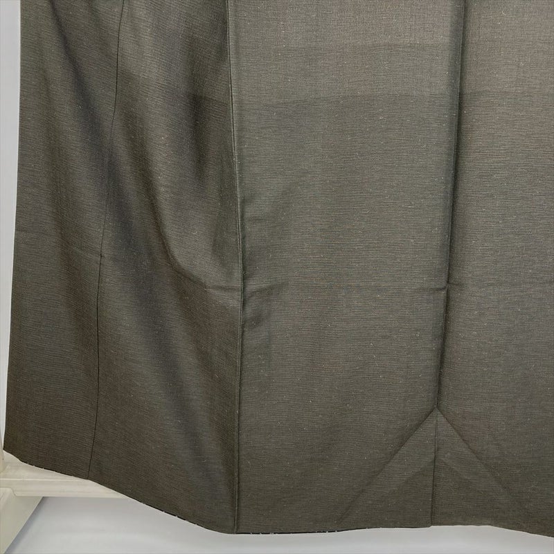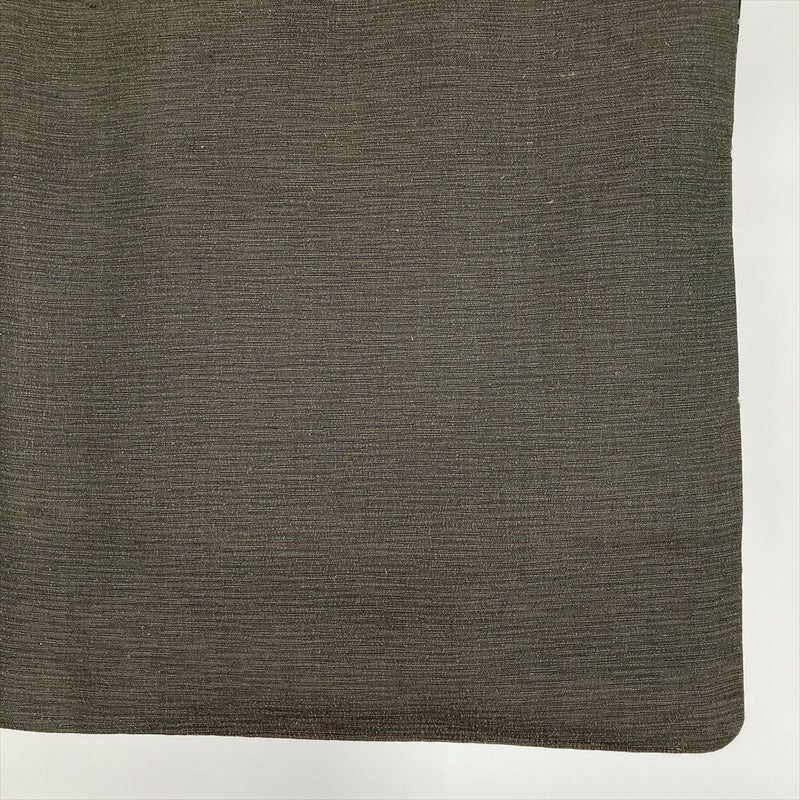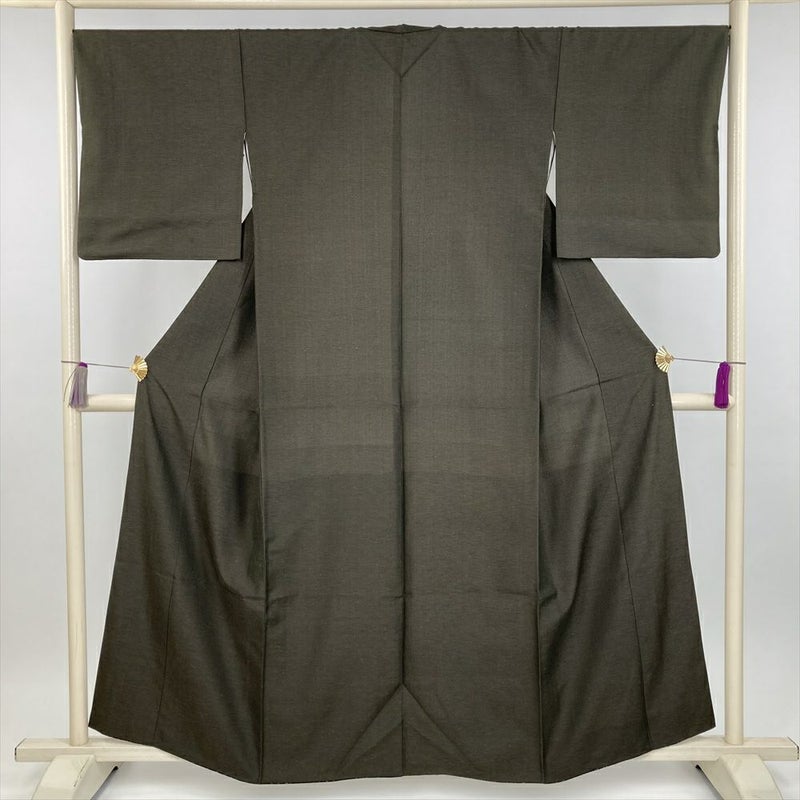 (中古) 紬 濃茶緑 カジュアル 横段 無地感 袷 絹【身丈】154cm【裄丈】68cm