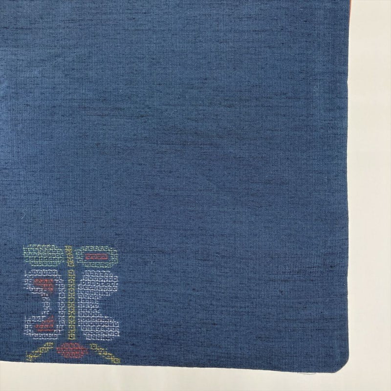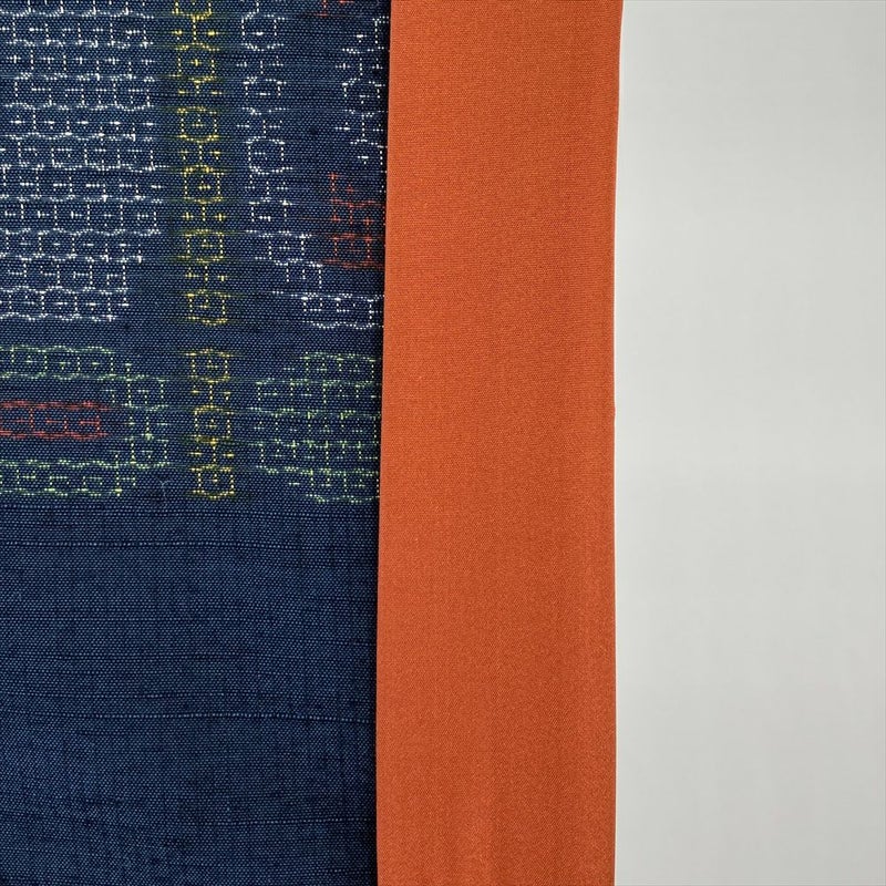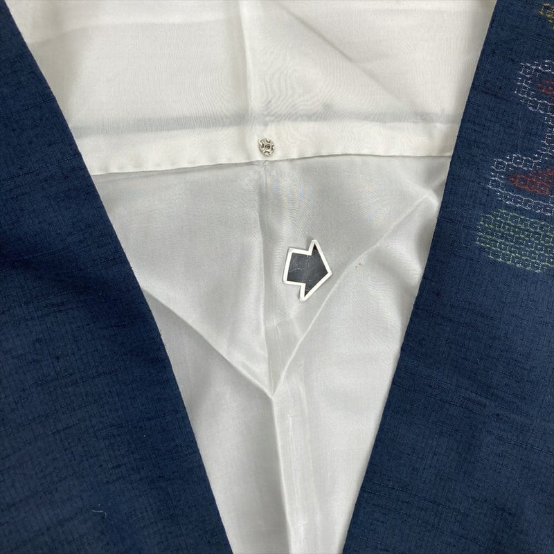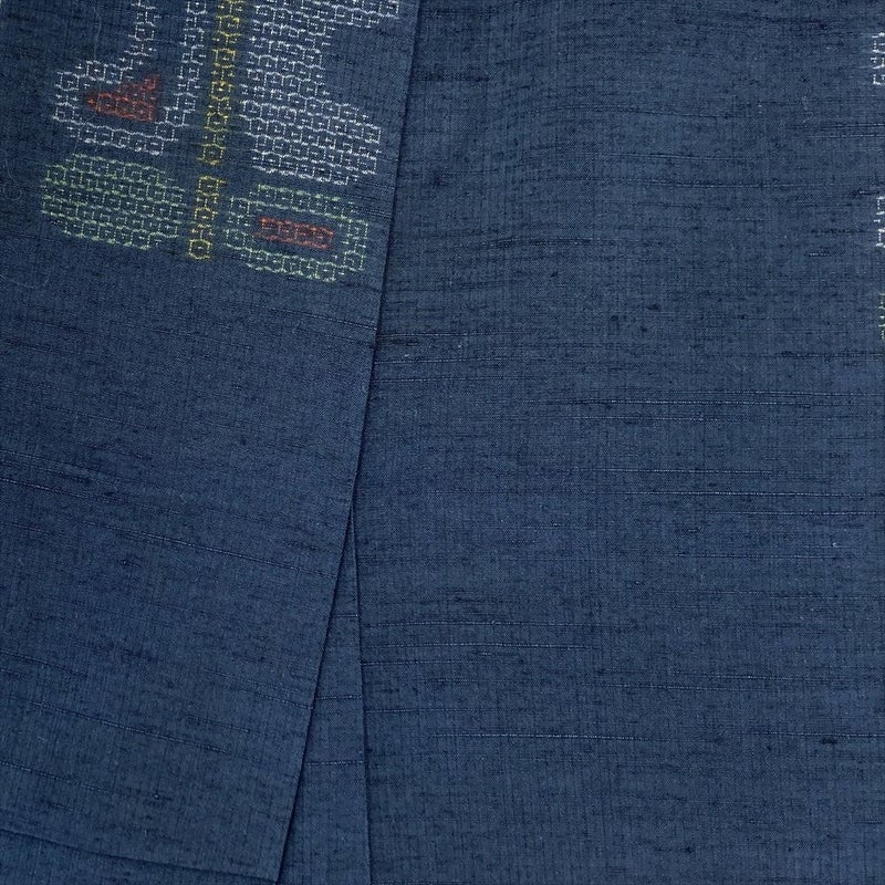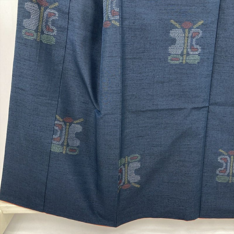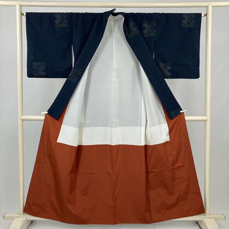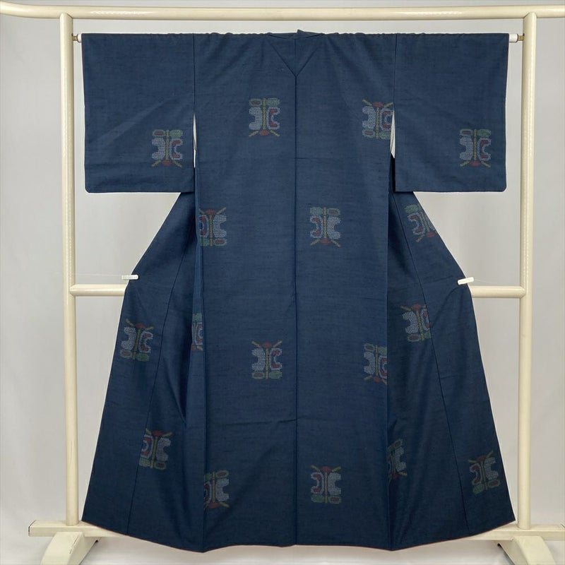 (中古) 紬 紺 カジュアル 遠州椿調 袷 絹 【身丈】152.5cm【裄丈】66cm