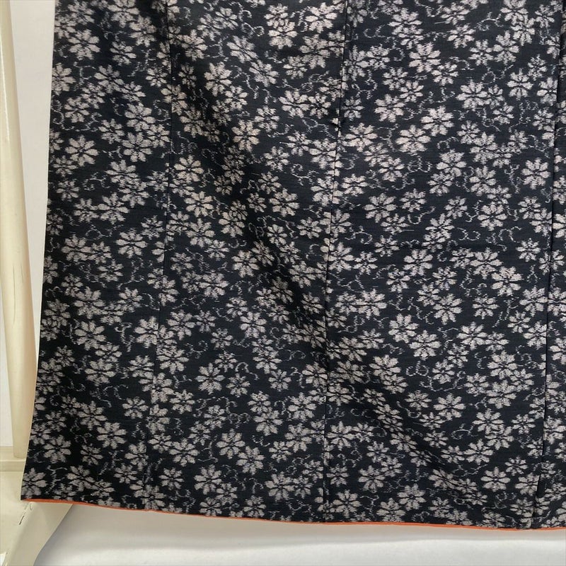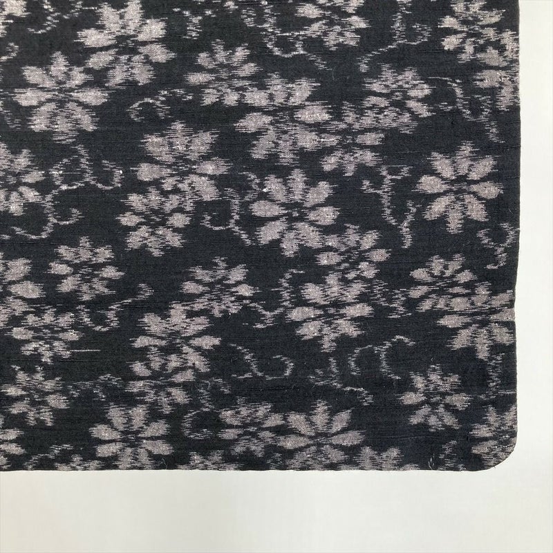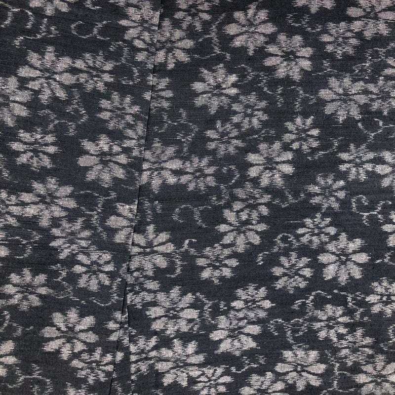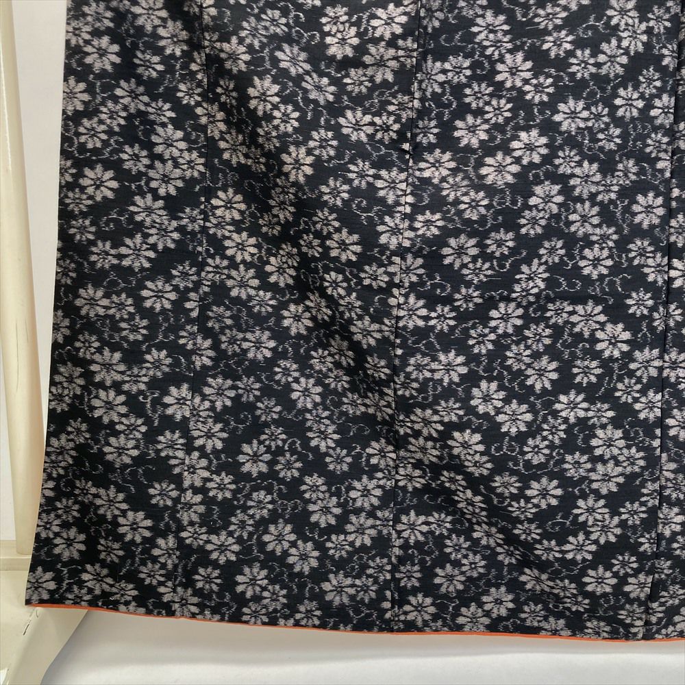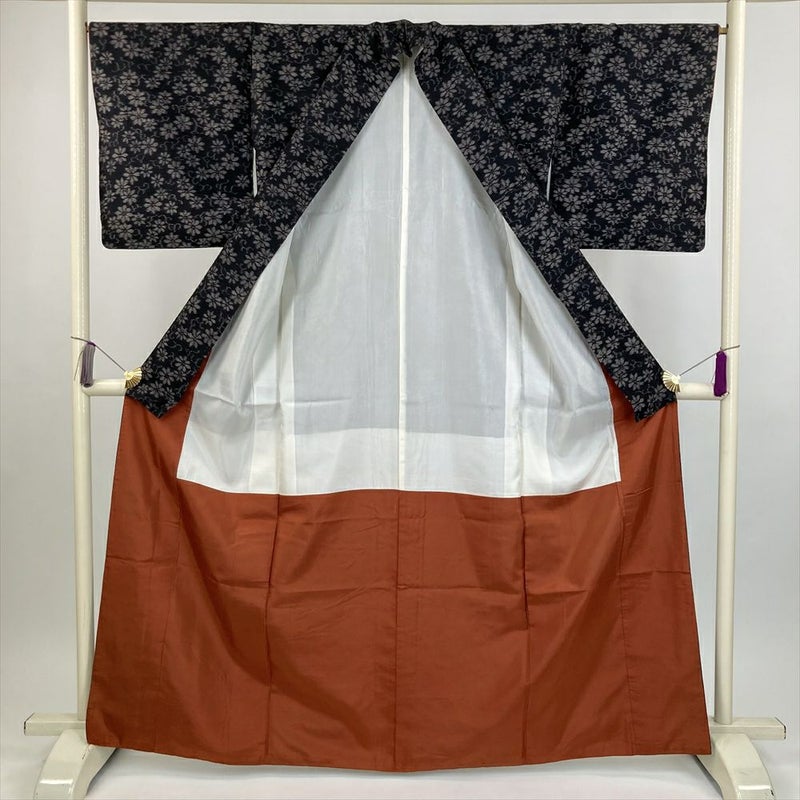 (中古) 紬 墨黒 カジュアル 菊唐草 袷 絹 【身丈】159.5cm【裄丈】66.5cm