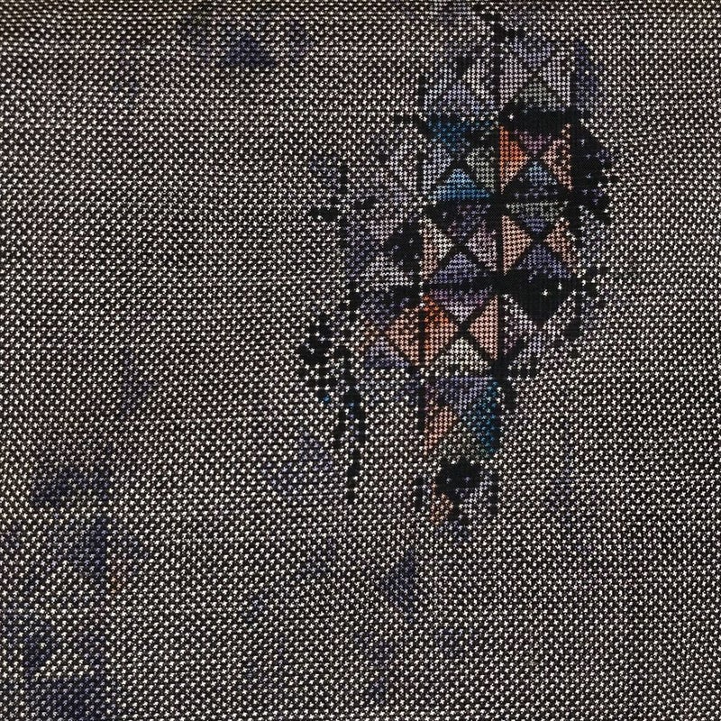 モダンなステンドグラス柄が、カジュアルな装いに遊び心を添えます。個性を楽しむ、特別な一枚です。