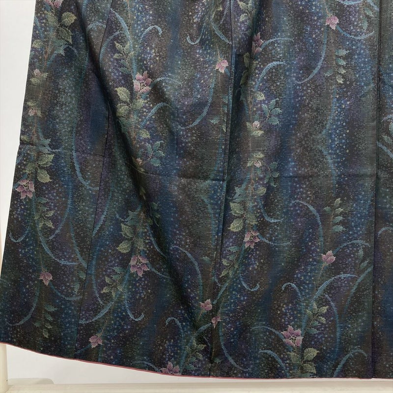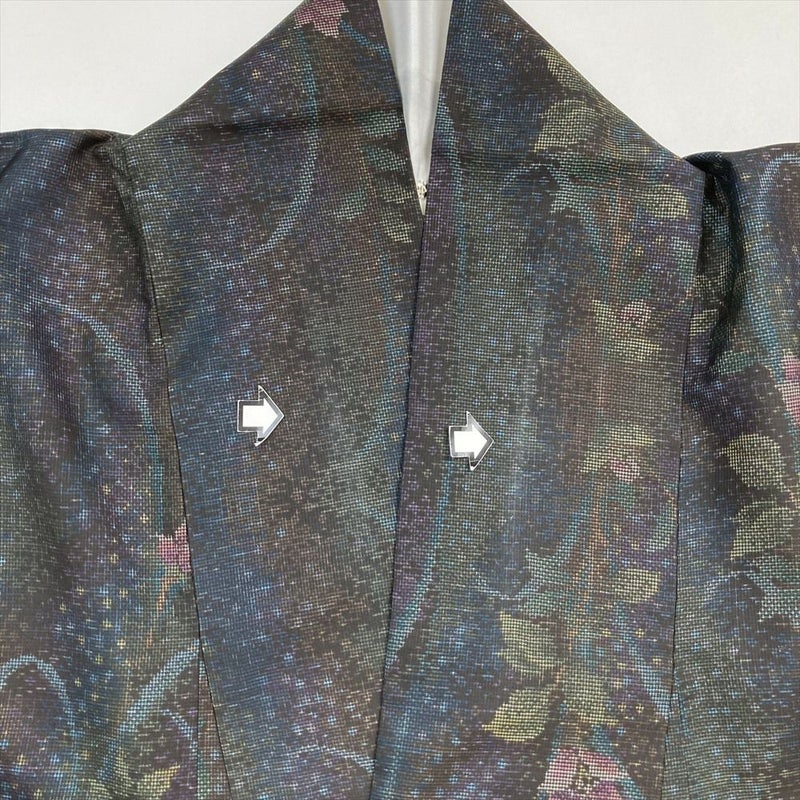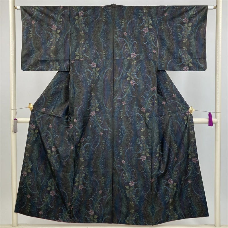 (中古) 大島紬 焦げ茶 カジュアル 草花 袷 絹【身丈】146cm【裄丈】63.5cm