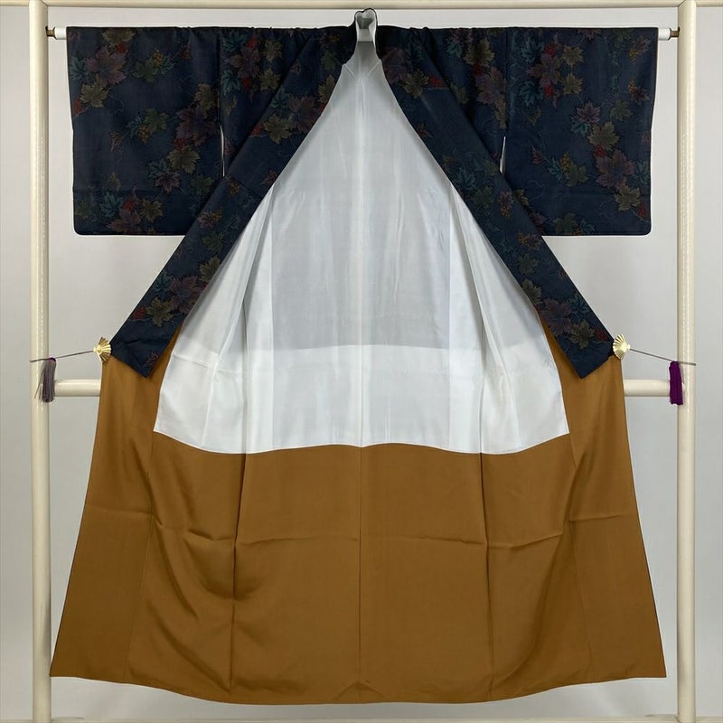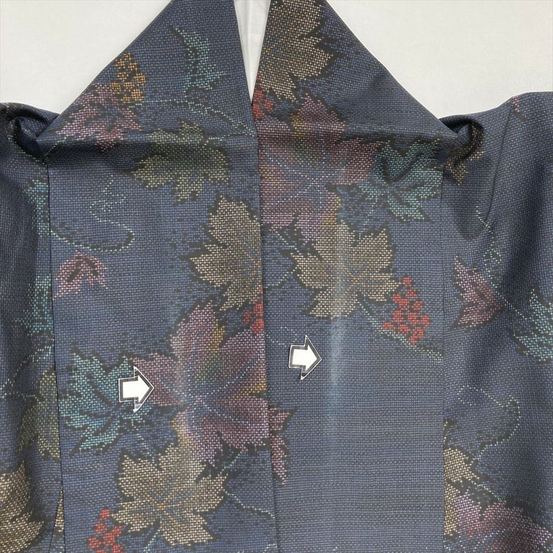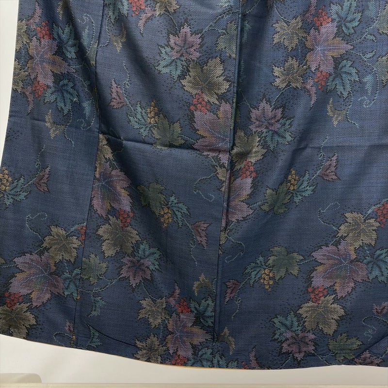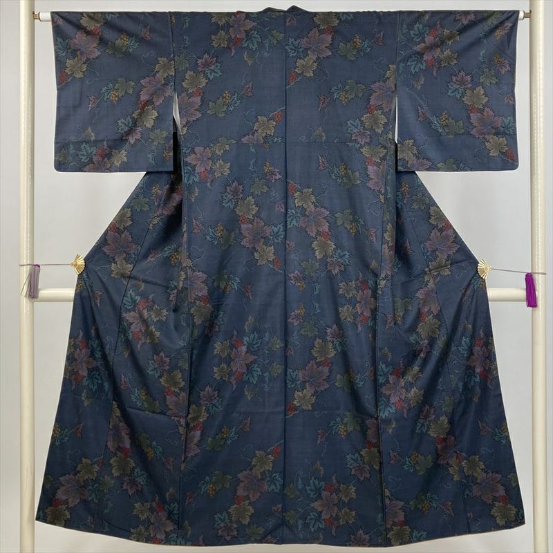 (中古) 大島紬 紺 カジュアル 葡萄 袷 絹【身丈】143.5cm【裄丈】64cm