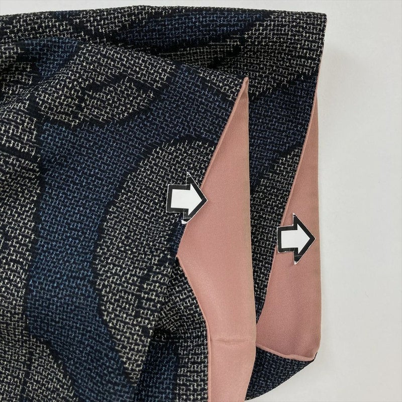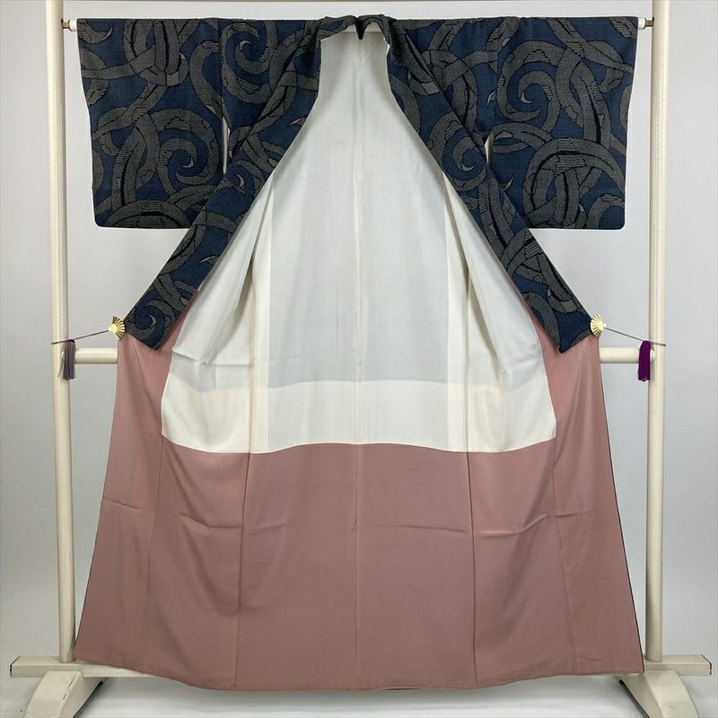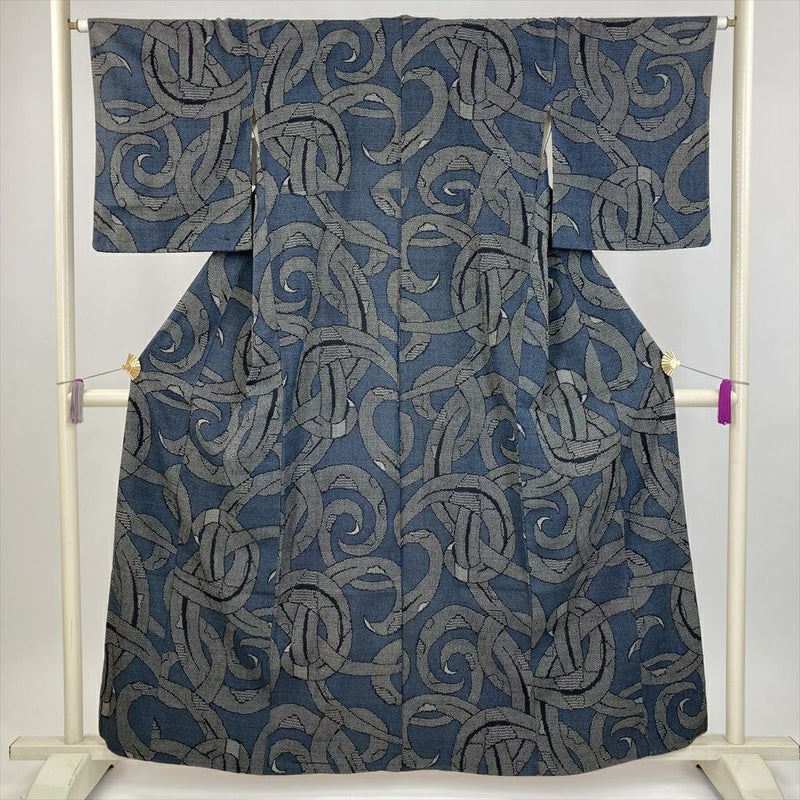 (中古) 紬 藍色 カジュアル 抽象柄 袷 絹【身丈】155cm【裄丈】65cm