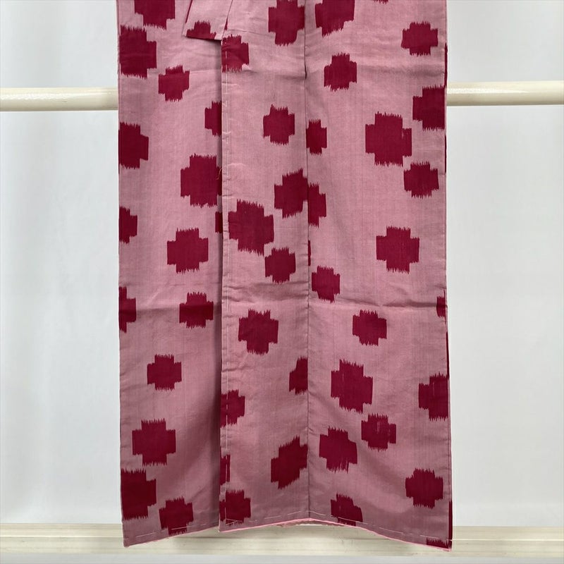 (中古) 紬 ローズレッド ピンク ヴィンテージ 十字 袷 絹【身丈】146cm【裄丈】61.5cm