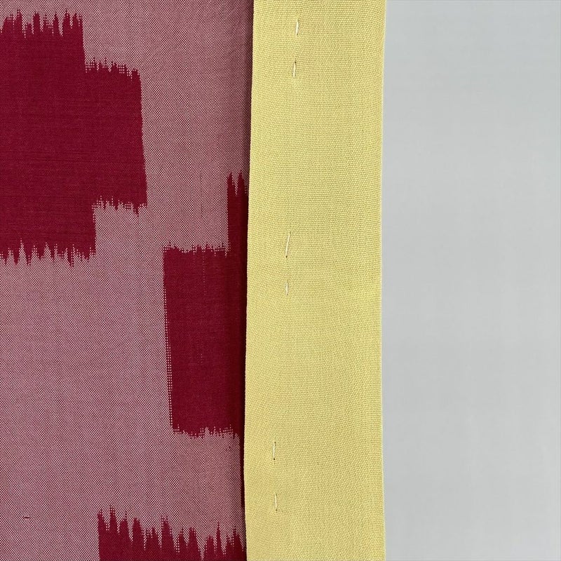 素朴で優しい風合いの紬地に、十字絣の伝統的な文様がモダンな印象になります。