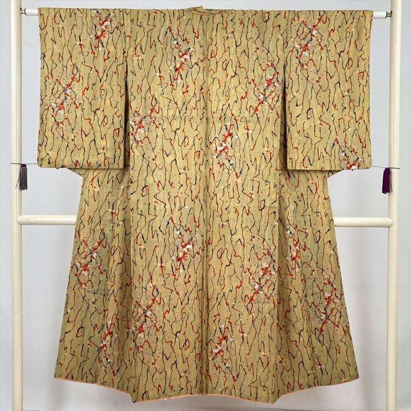 (中古) 紬 薄黄 ヴィンテージ 梅 袷 絹【身丈】137cm【裄丈】61.5cm