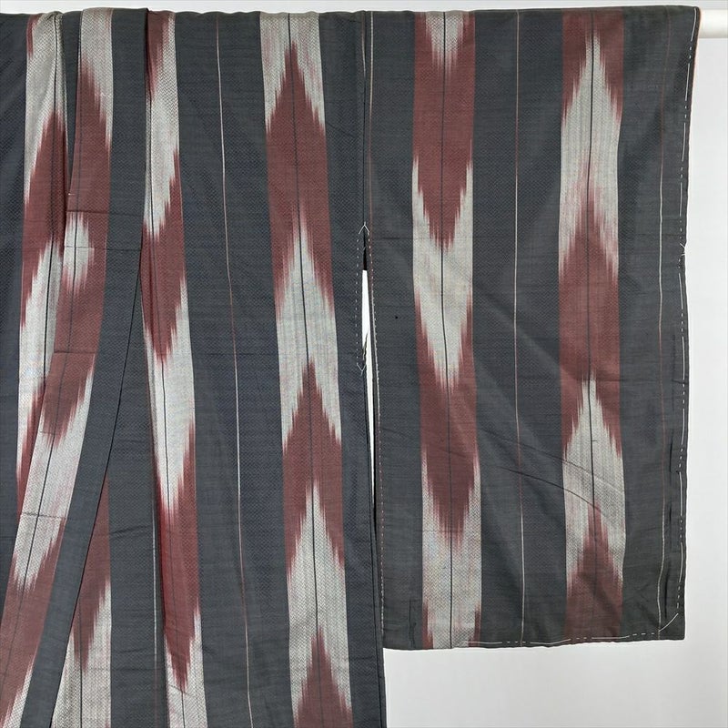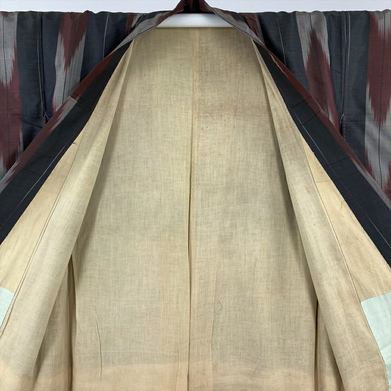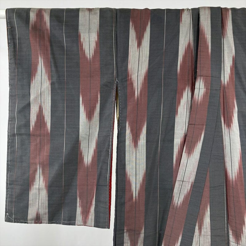 (中古) 紬 墨色 グレー ヴィンテージ 矢羽根 袷 絹【身丈】138cm【裄丈】59.5cm