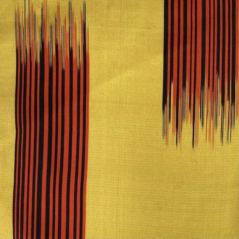 落ち着いた山吹色の地に、リズミカルな変わり縞が織りなされたヴィンテージ紬です。