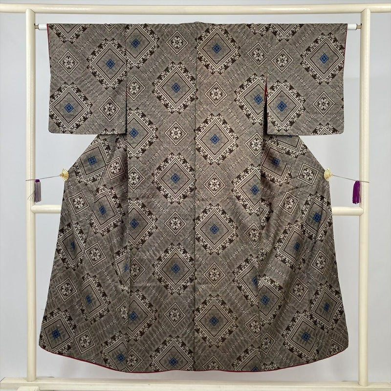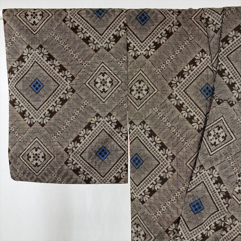 (中古) 紬 茶 ヴィンテージ 龍郷柄 袷 絹【身丈】142.5cm【裄丈】63cm