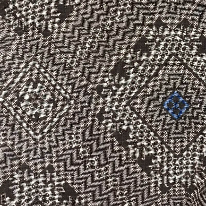 茶色の地に、美しい青の龍郷柄が緻密に織り上げられています。