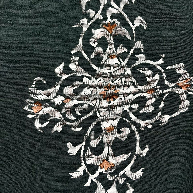 深みのある緑色に、アール・ヌーヴォー調の優雅な曲線が描かれたヴィンテージ紬です。