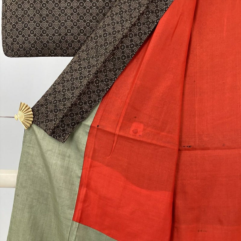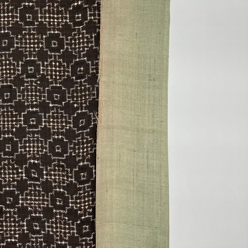 幾何学柄が織りなす、ヴィンテージの茶色い紬です。